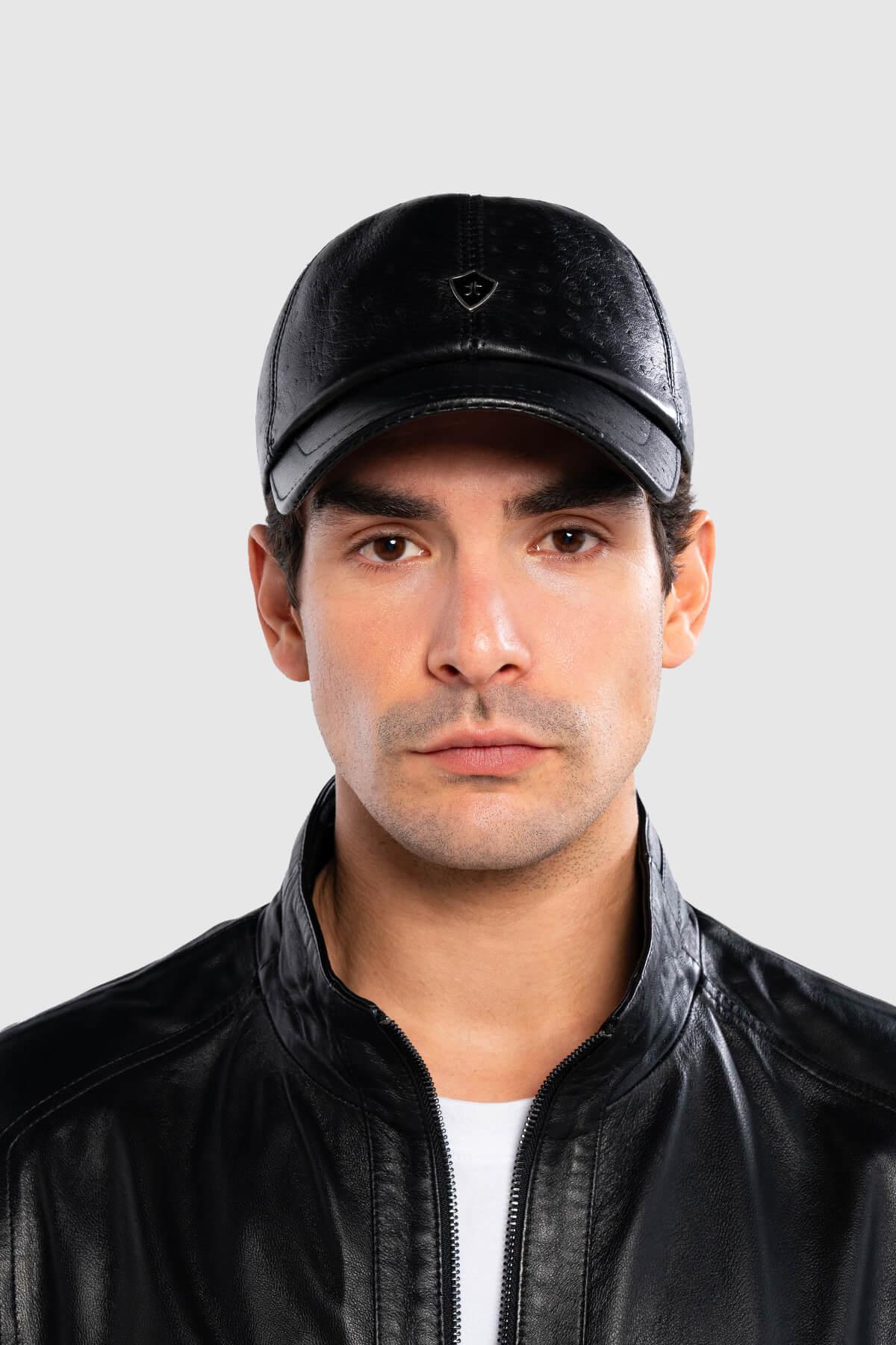Tamer Tanca Erkek Hakiki Deri Siyah Devekuşu Şapka