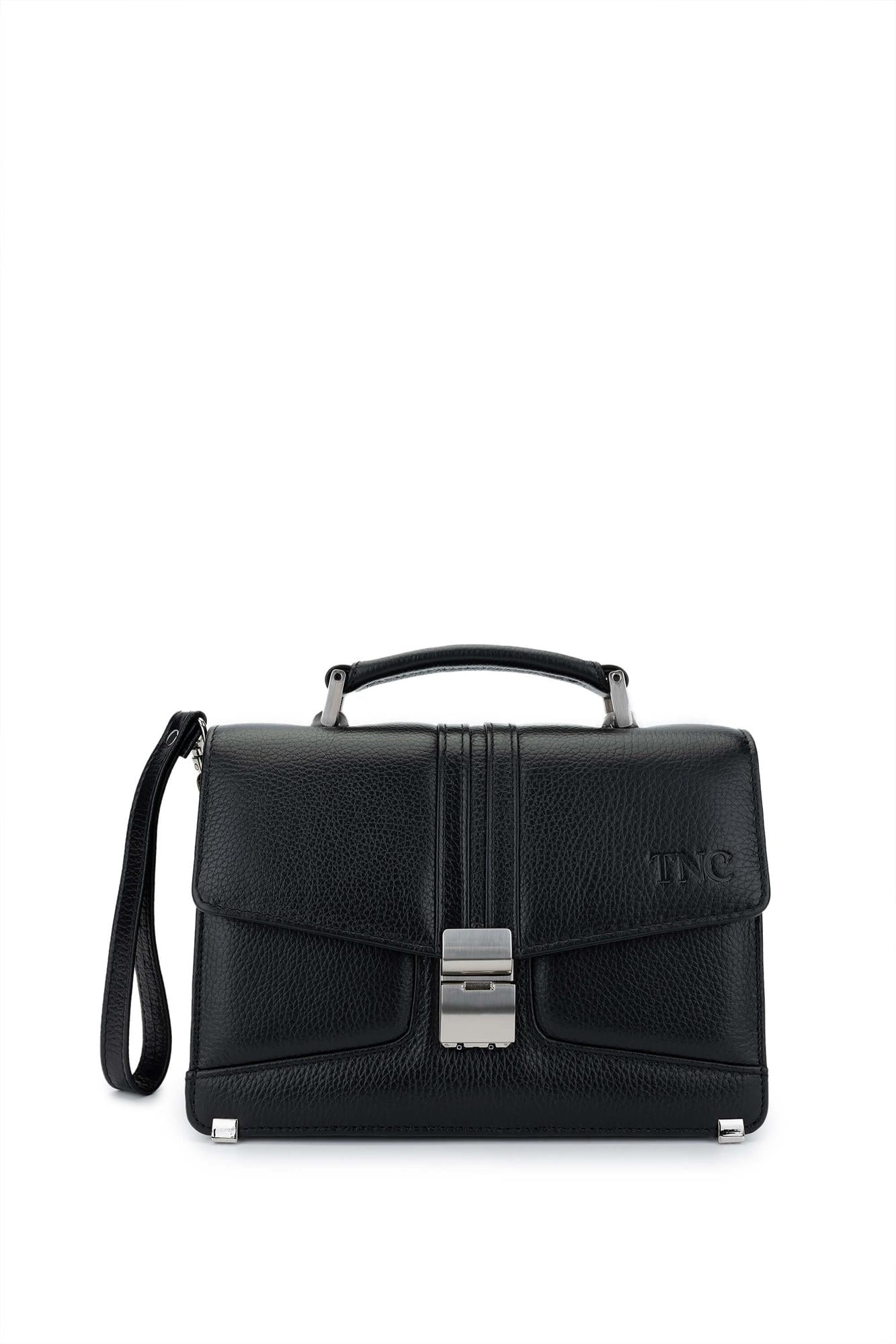 Tamer Tanca Erkek Hakiki Deri Siyah Floter El Çantası