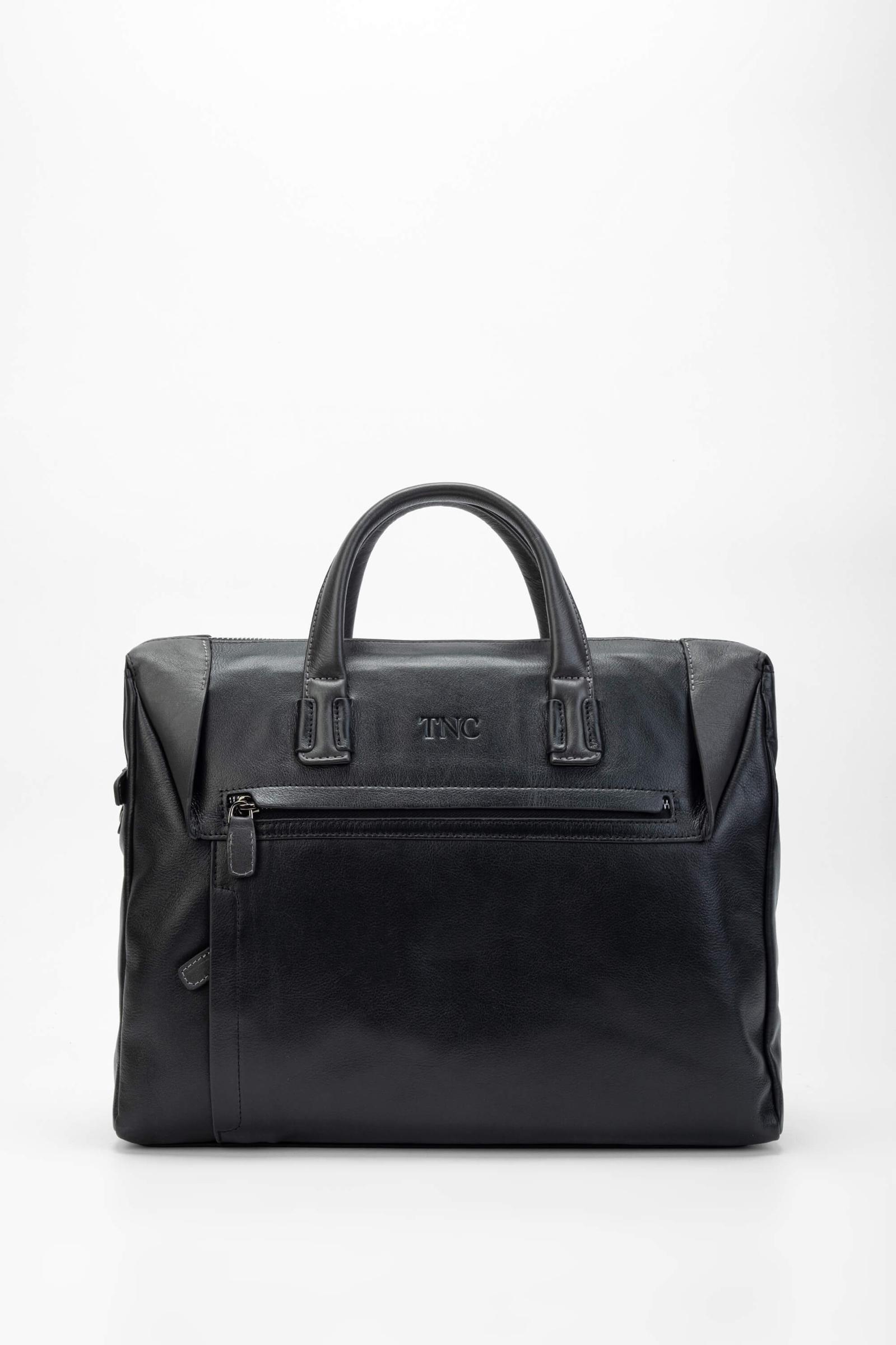 Tamer Tanca Erkek Hakiki Deri Siyah/Gri Evrak Çantası
