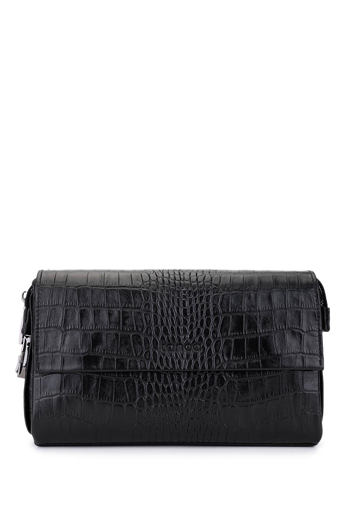 Tamer Tanca Erkek Hakiki Deri Siyah Kroko El Çantası