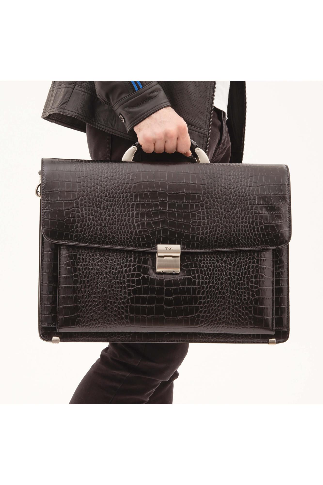 Tamer Tanca Erkek Hakiki Deri Siyah Kroko Evrak Çantası