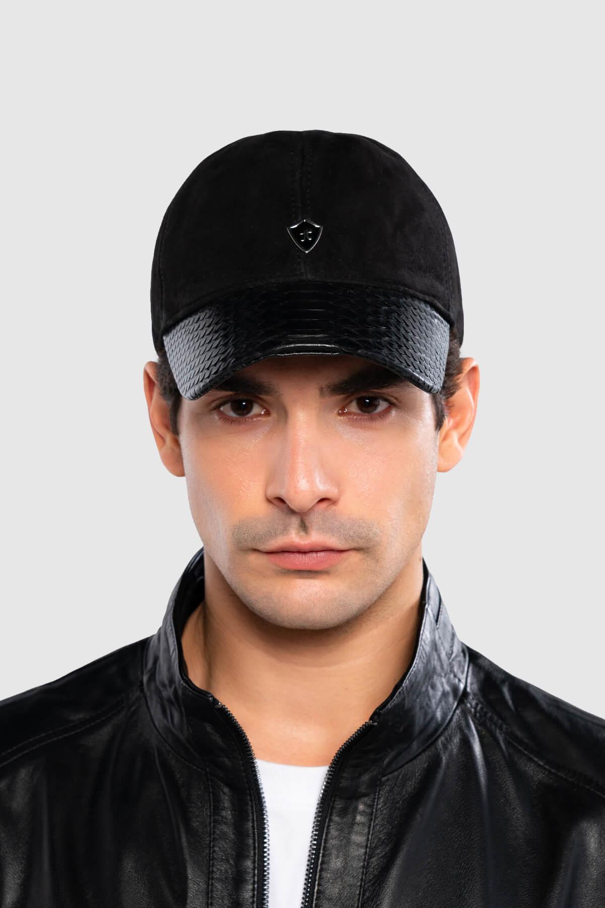 Tamer Tanca Erkek Hakiki Deri Siyah Süet Yılan Şapka