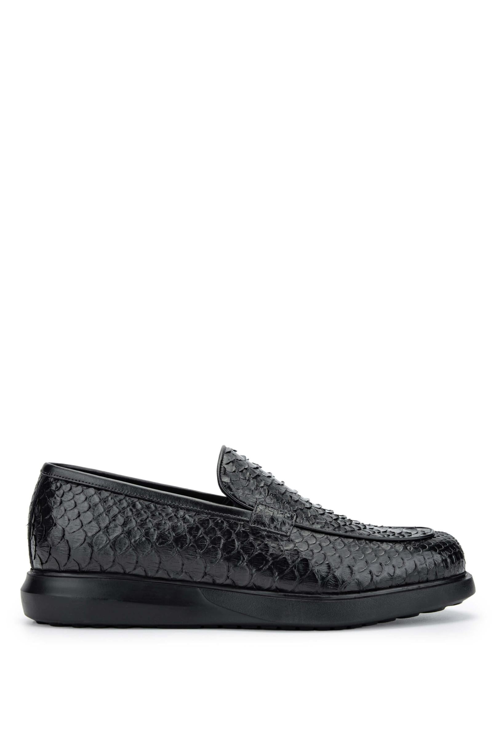 Tamer Tanca Erkek Hakiki Deri Siyah Yılan Loafer Ayakkabı