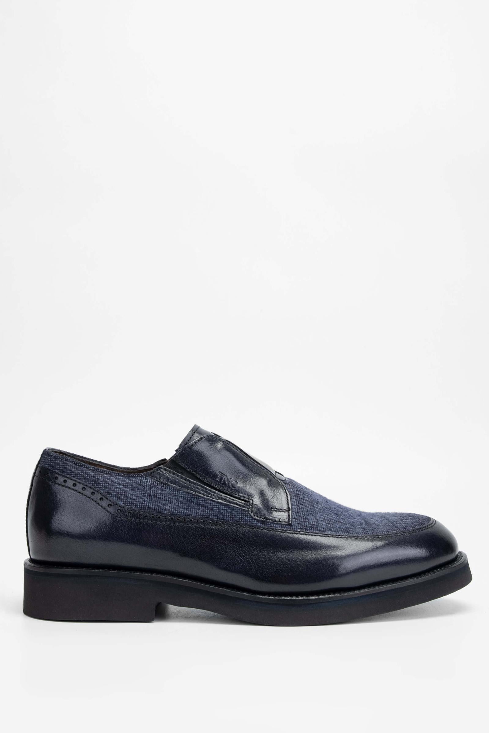 Tamer Tanca Erkek Hakiki Deri/Tekstil Lacivert Makosen Ayakkabı