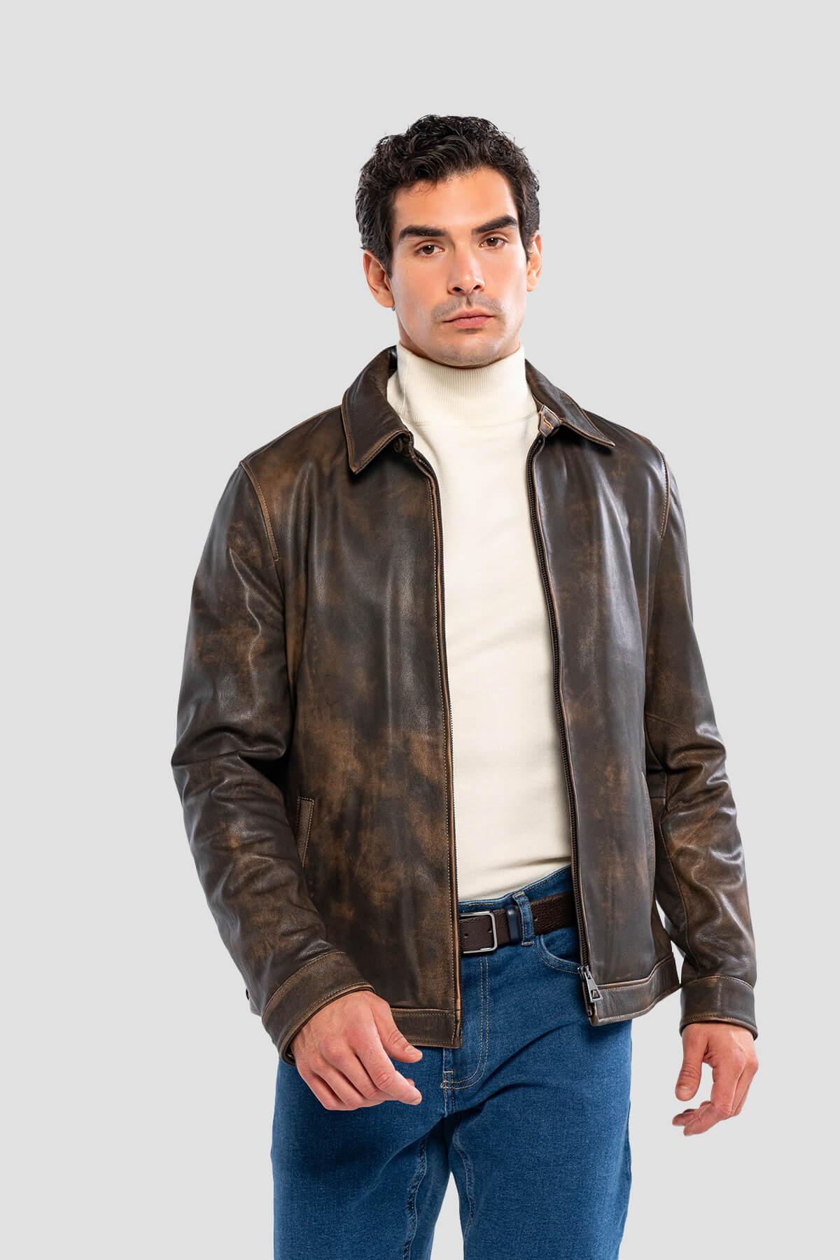 Tamer Tanca Erkek Hakiki Deri Viski Eskitme Deri Mont