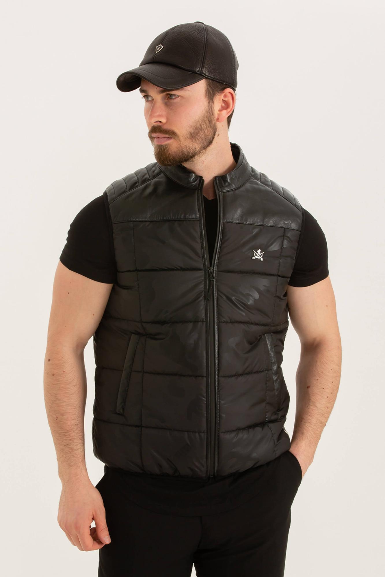 Tamer Tanca Erkek Tekstil Deri Siyah Yelek Deri Mont