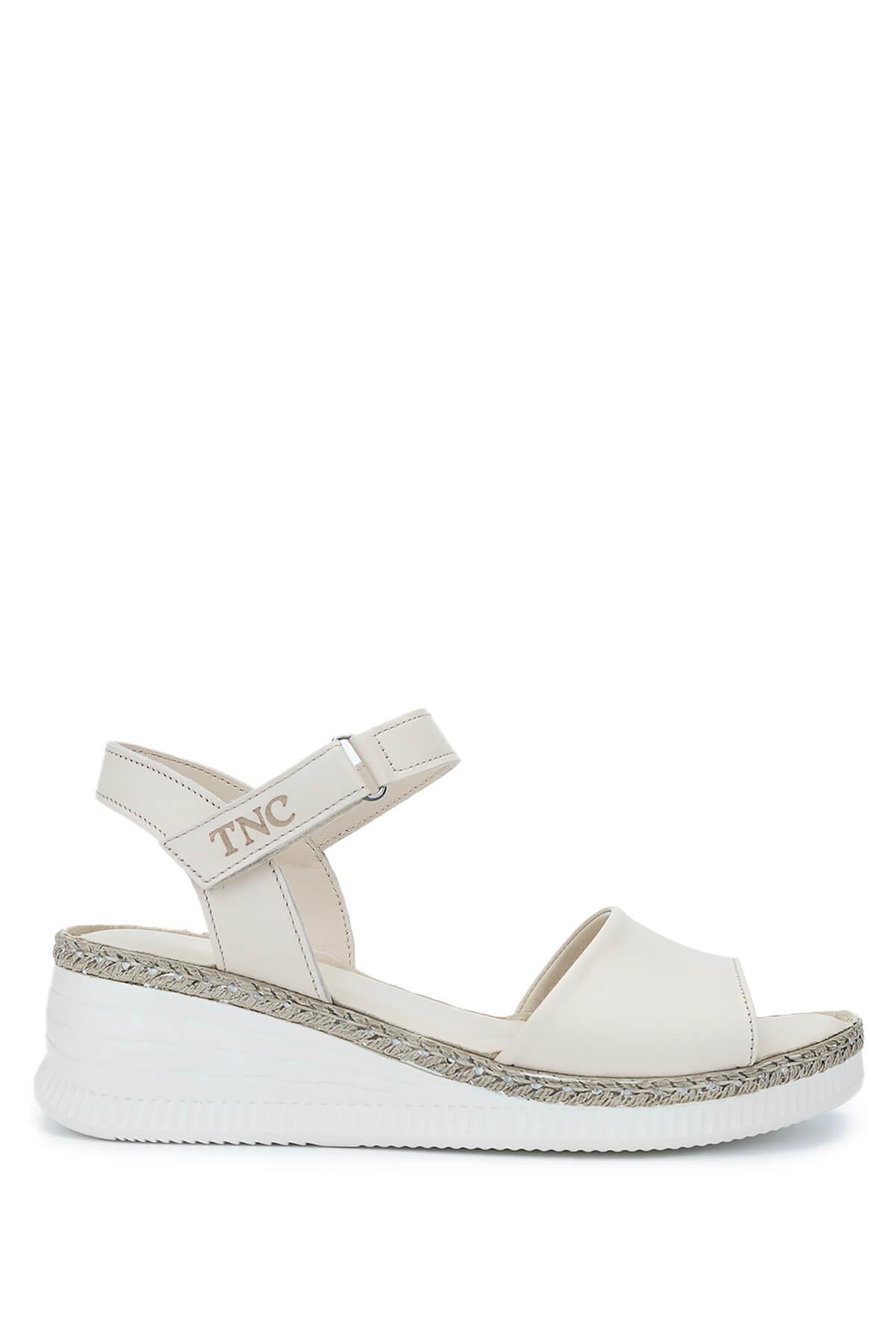 Tamer Tanca Kadın Hakiki Deri Bej Comfort Sandalet