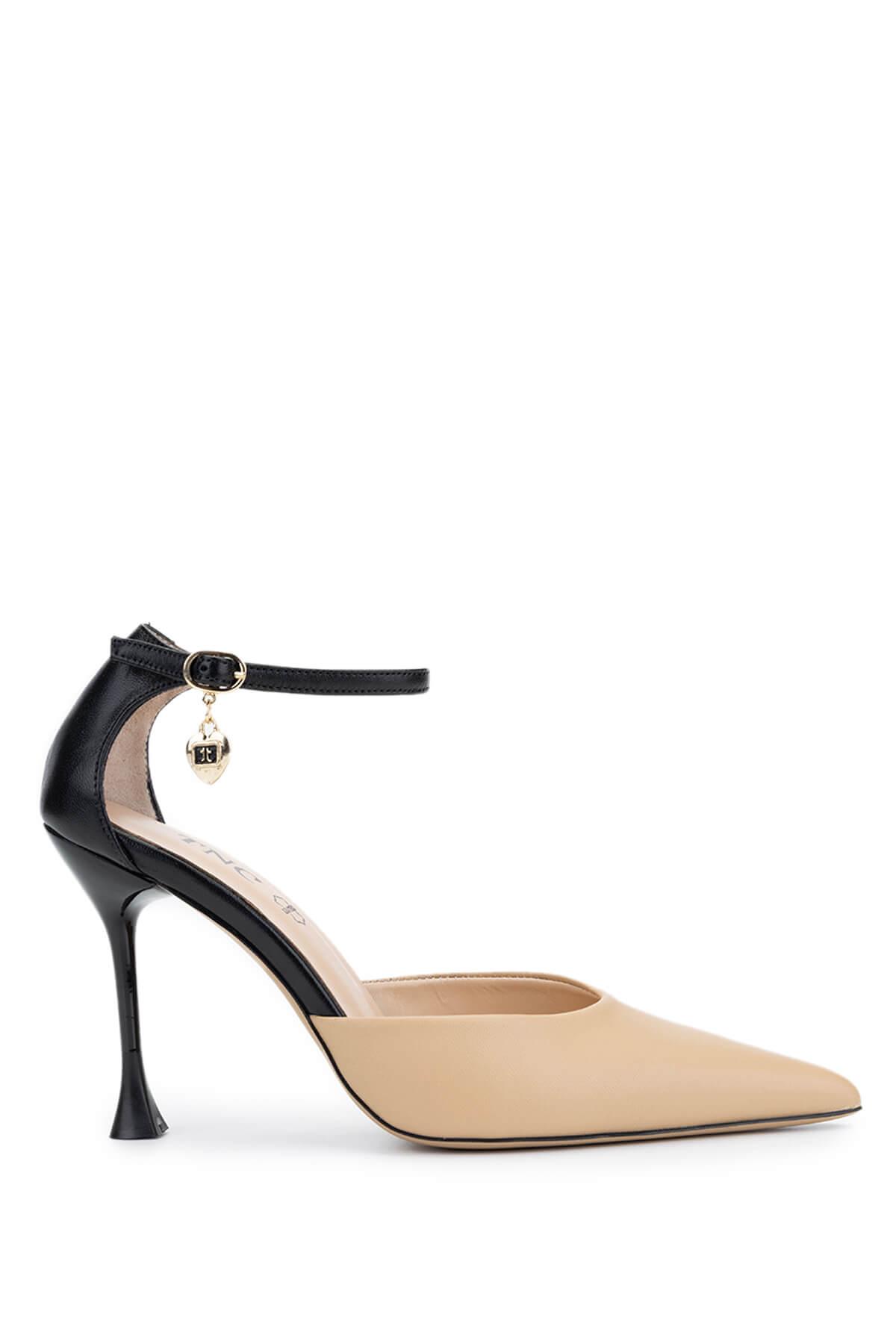 Tamer Tanca Kadın Hakiki Deri Bej/Siyah Topuklu Ayakkabı