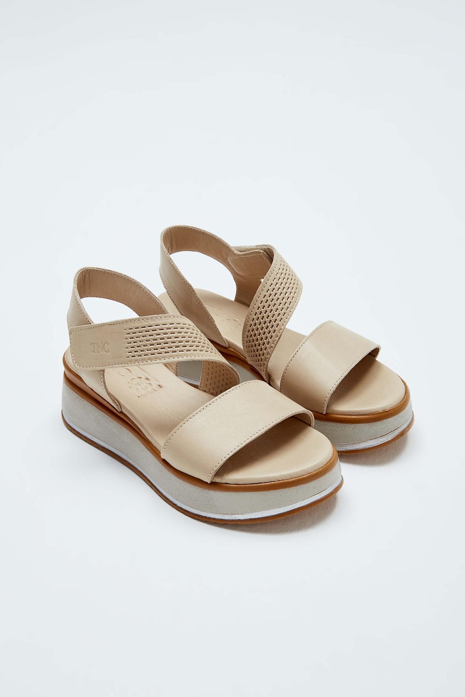 Tamer Tanca Kadın Hakiki Deri Bej Topuklu Sandalet