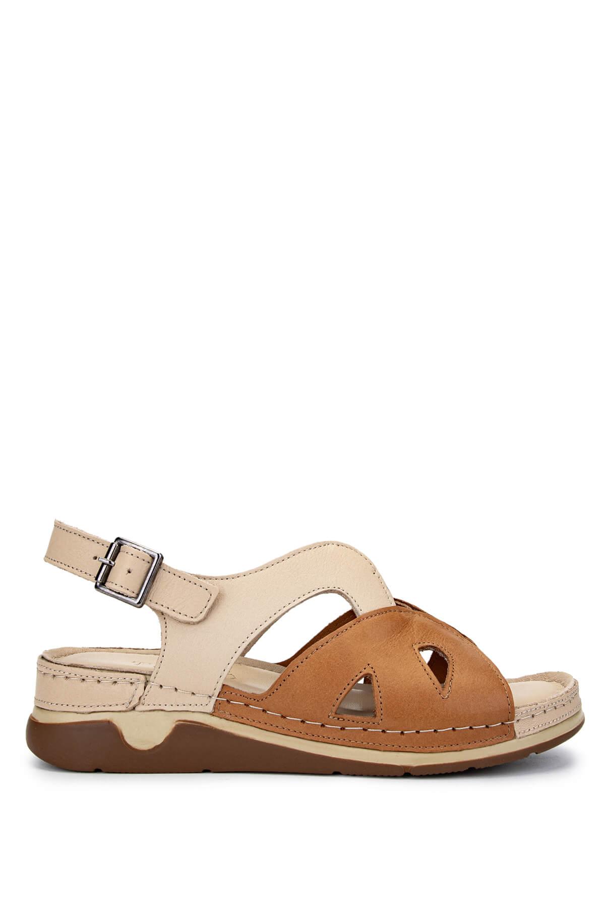 Tamer Tanca Kadın Hakiki Deri Bej Topuklu Sandalet