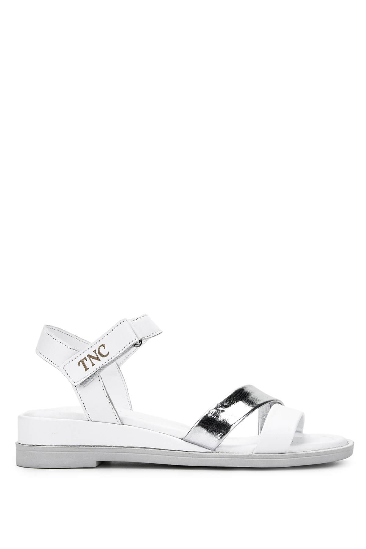 Tamer Tanca Kadın Hakiki Deri Beyaz/Lame Topuklu Sandalet