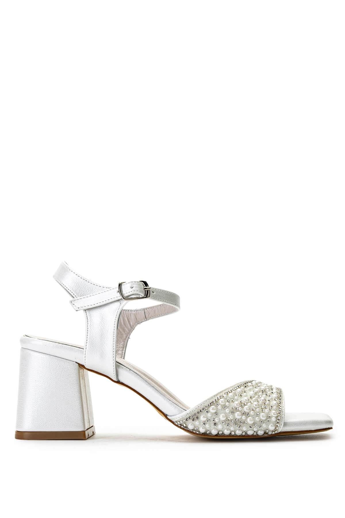 Tamer Tanca Kadın Hakiki Deri Beyaz Sedef Topuklu Ayakkabı