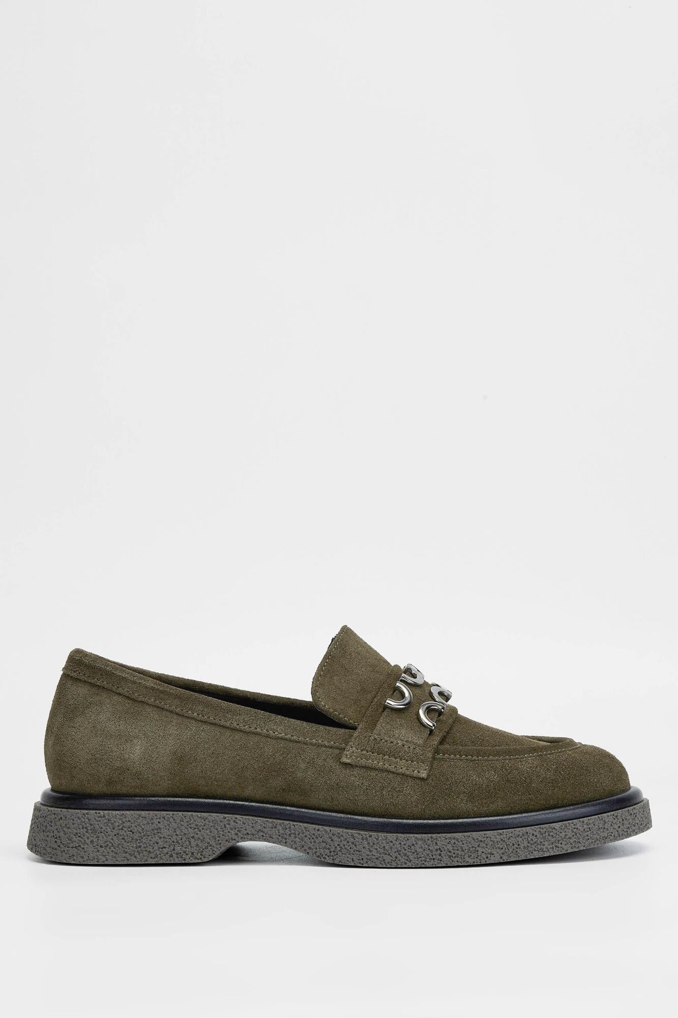 Tamer Tanca Kadın Hakiki Deri Haki Süet Loafer Ayakkabı