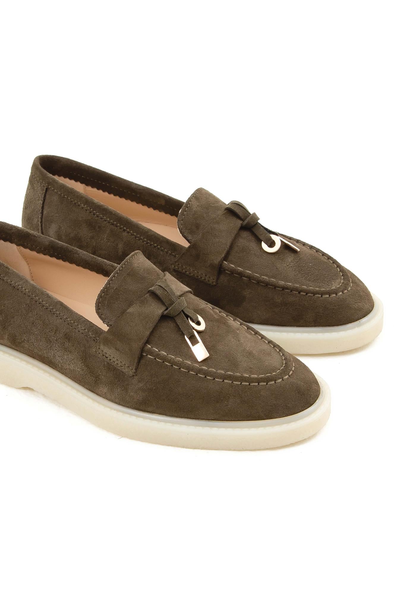Tamer Tanca Kadın Hakiki Deri Haki Süet Loafer Ayakkabı