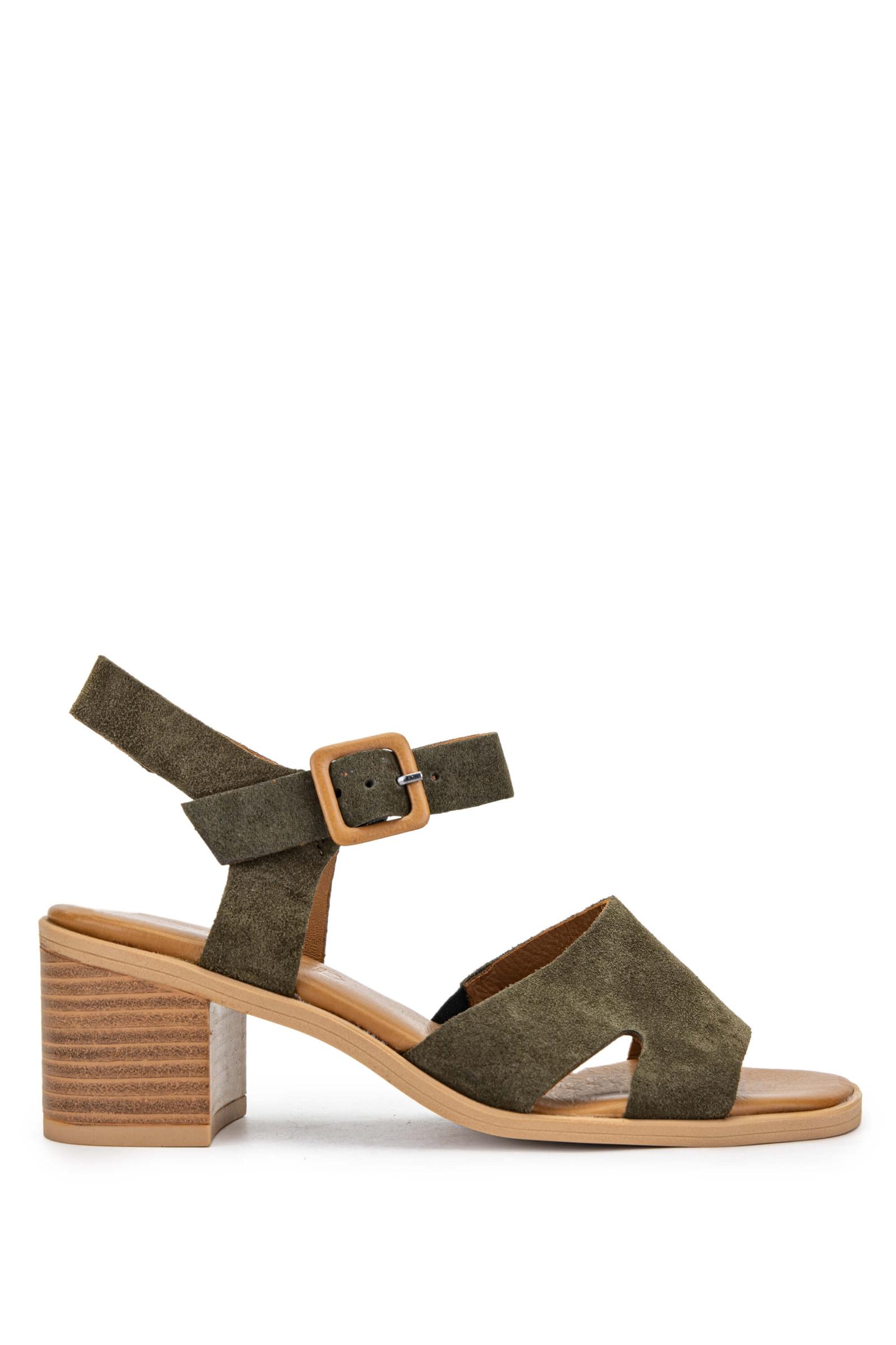 Tamer Tanca Kadın Hakiki Deri Haki Süet Topuklu Sandalet