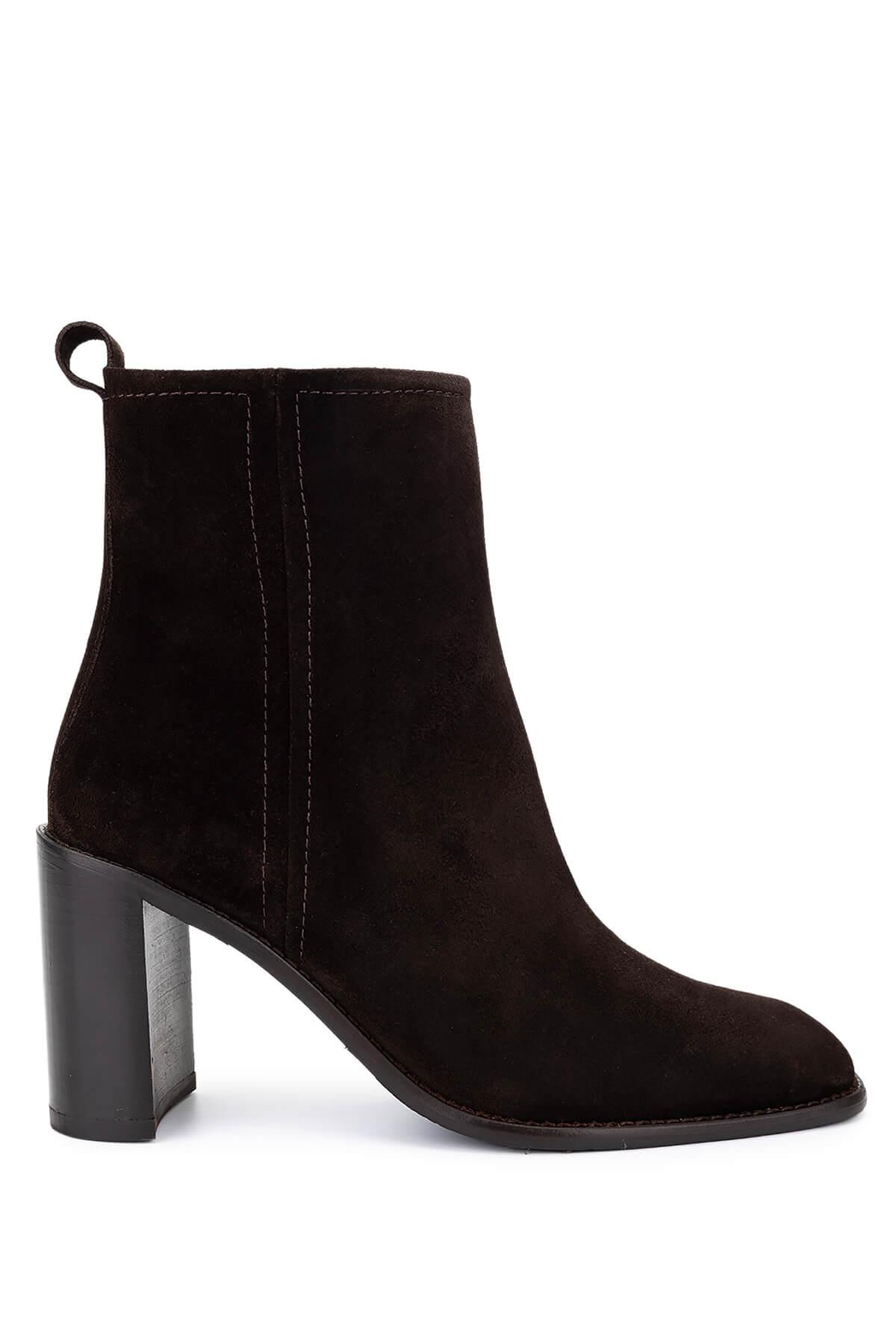 Tamer Tanca Kadın Hakiki Deri Kahverengi Süet Topuklu Bot
