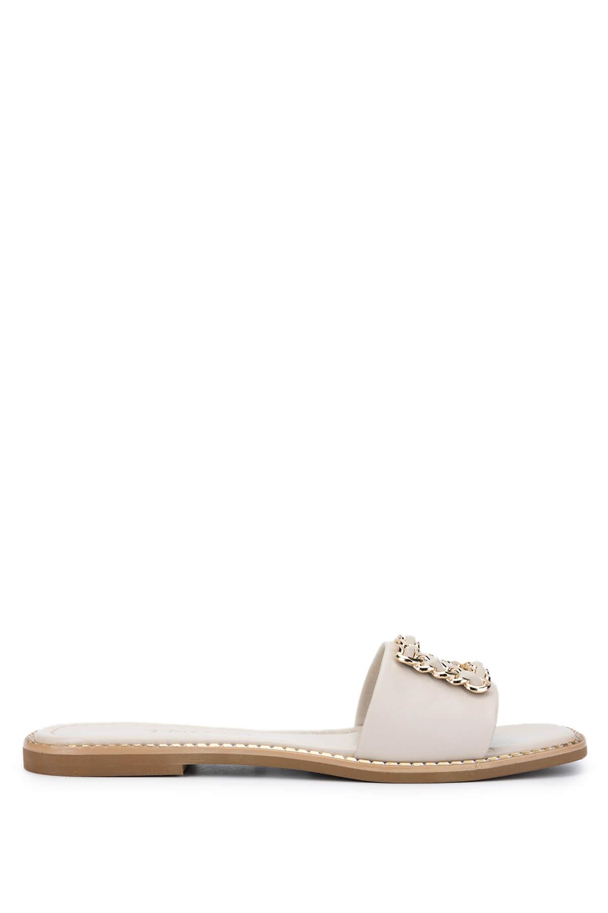 Tamer Tanca Kadın Hakiki Deri Kırık Beyaz Düz Terlik