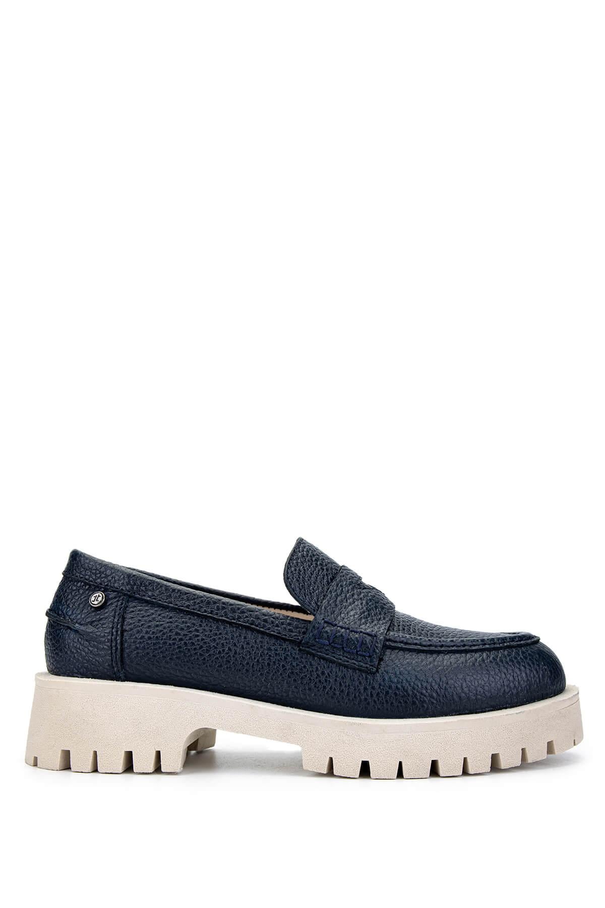 Tamer Tanca Kadın Hakiki Deri Lacivert Loafer Ayakkabı