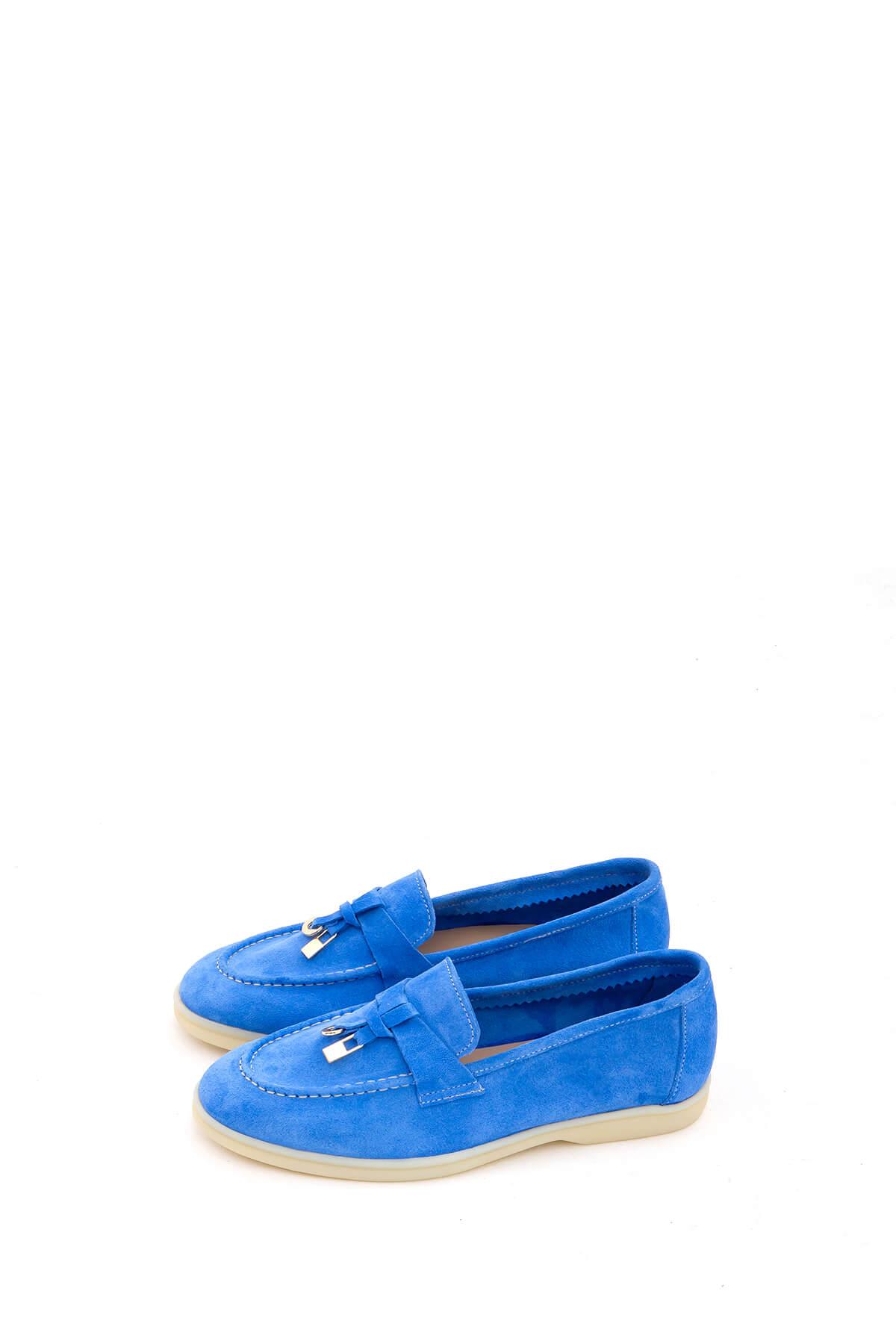 Tamer Tanca Kadın Hakiki Deri Mavi Loafer Ayakkabı