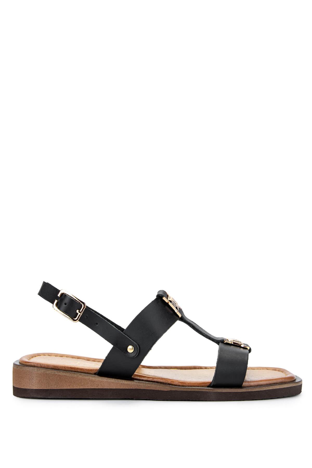 Tamer Tanca Kadın Hakiki Deri Siyah Deri Düz Sandalet