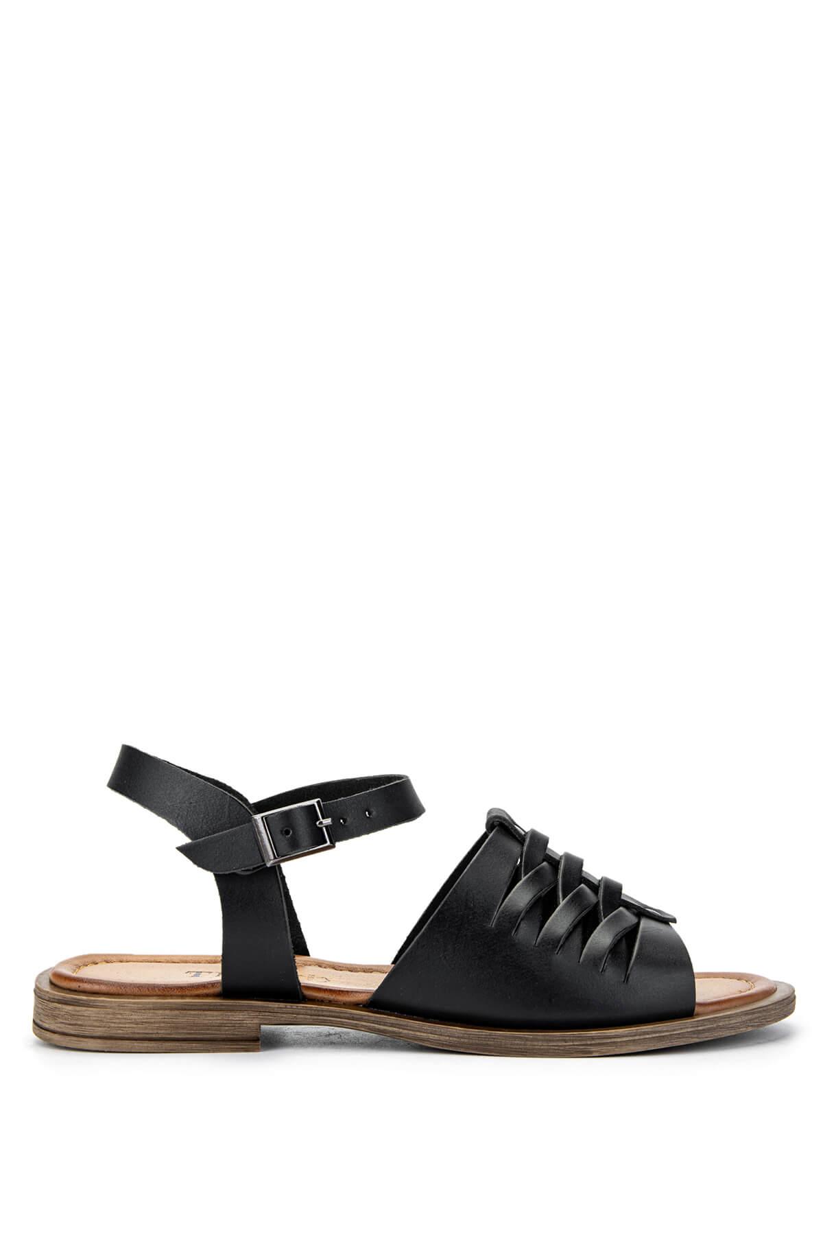 Tamer Tanca Kadın Hakiki Deri Siyah Deri Düz Sandalet