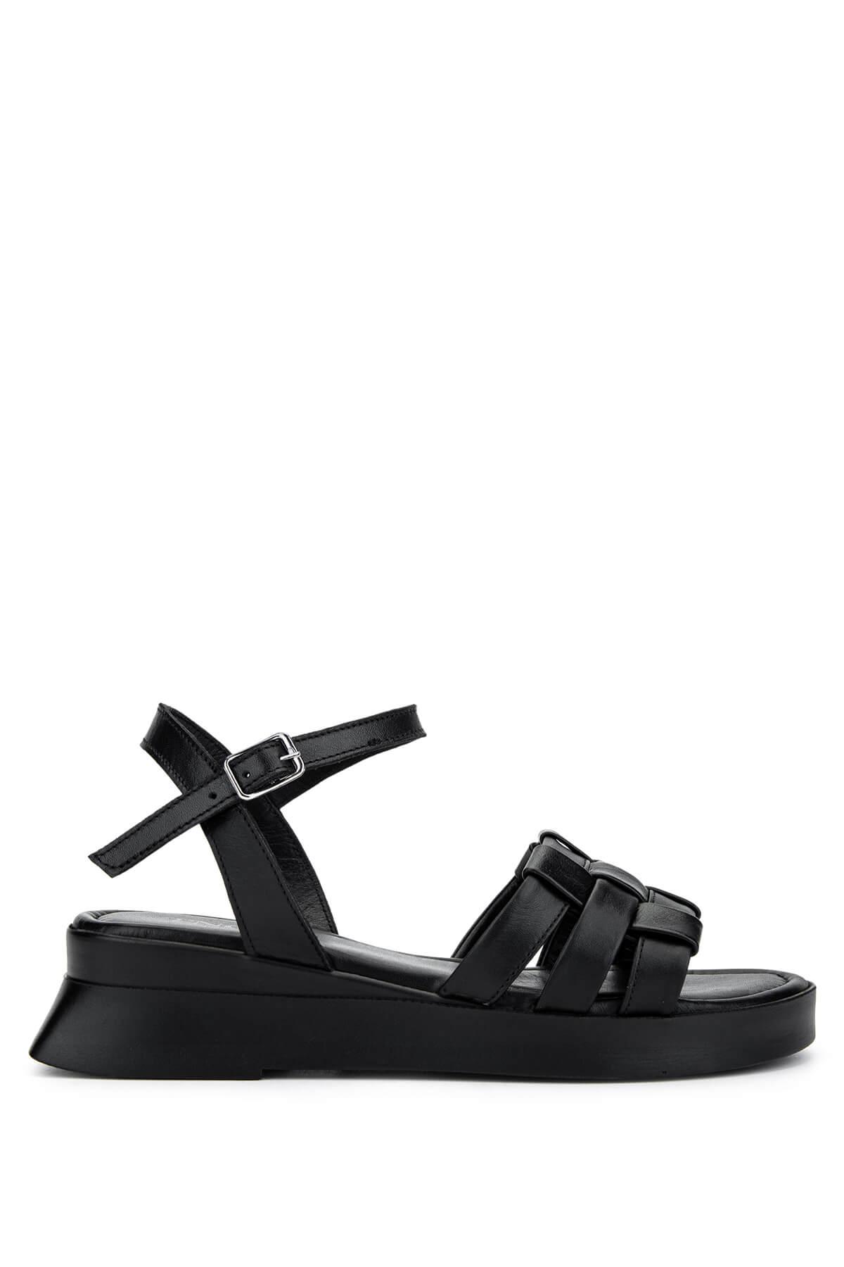 Tamer Tanca Kadın Hakiki Deri Siyah Deri Düz Sandalet