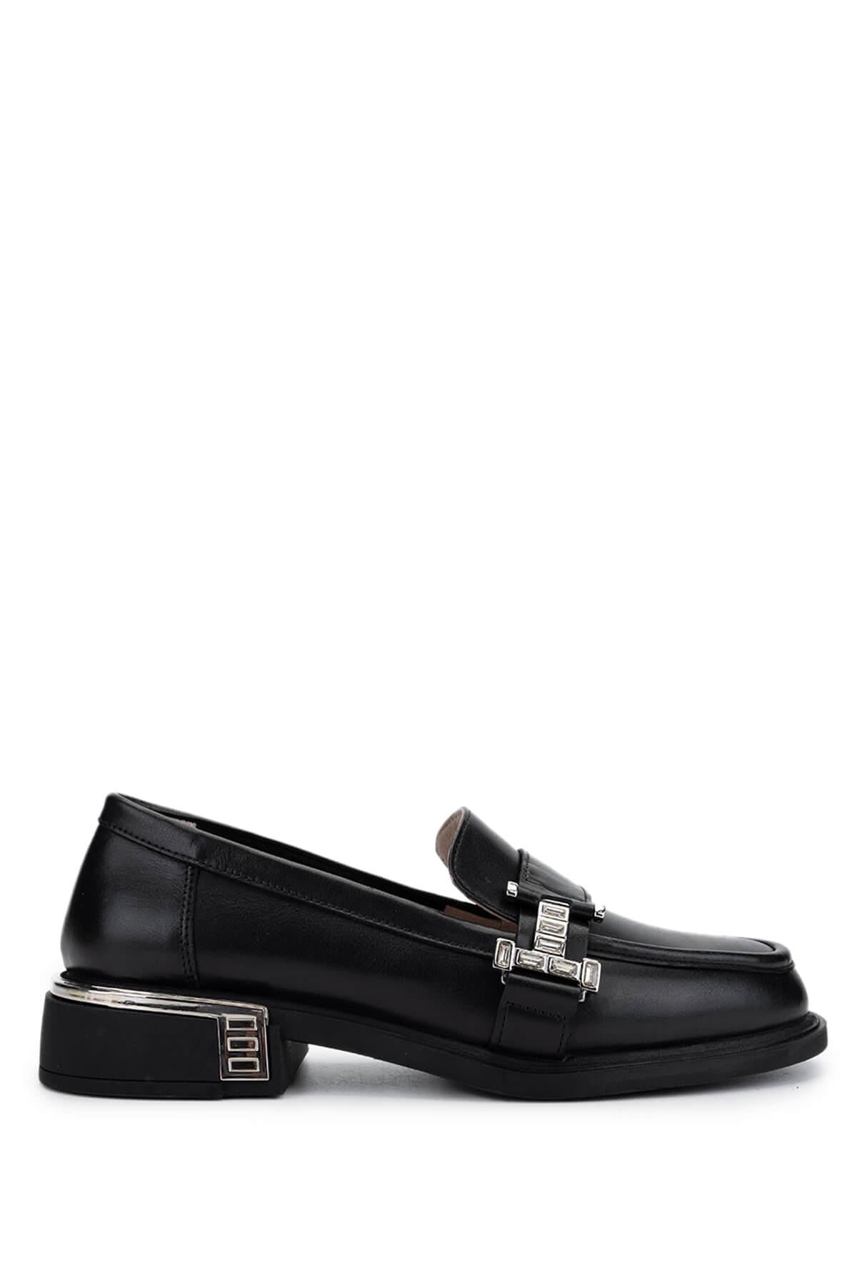 Tamer Tanca Kadın Hakiki Deri Siyah Deri Loafer Ayakkabı