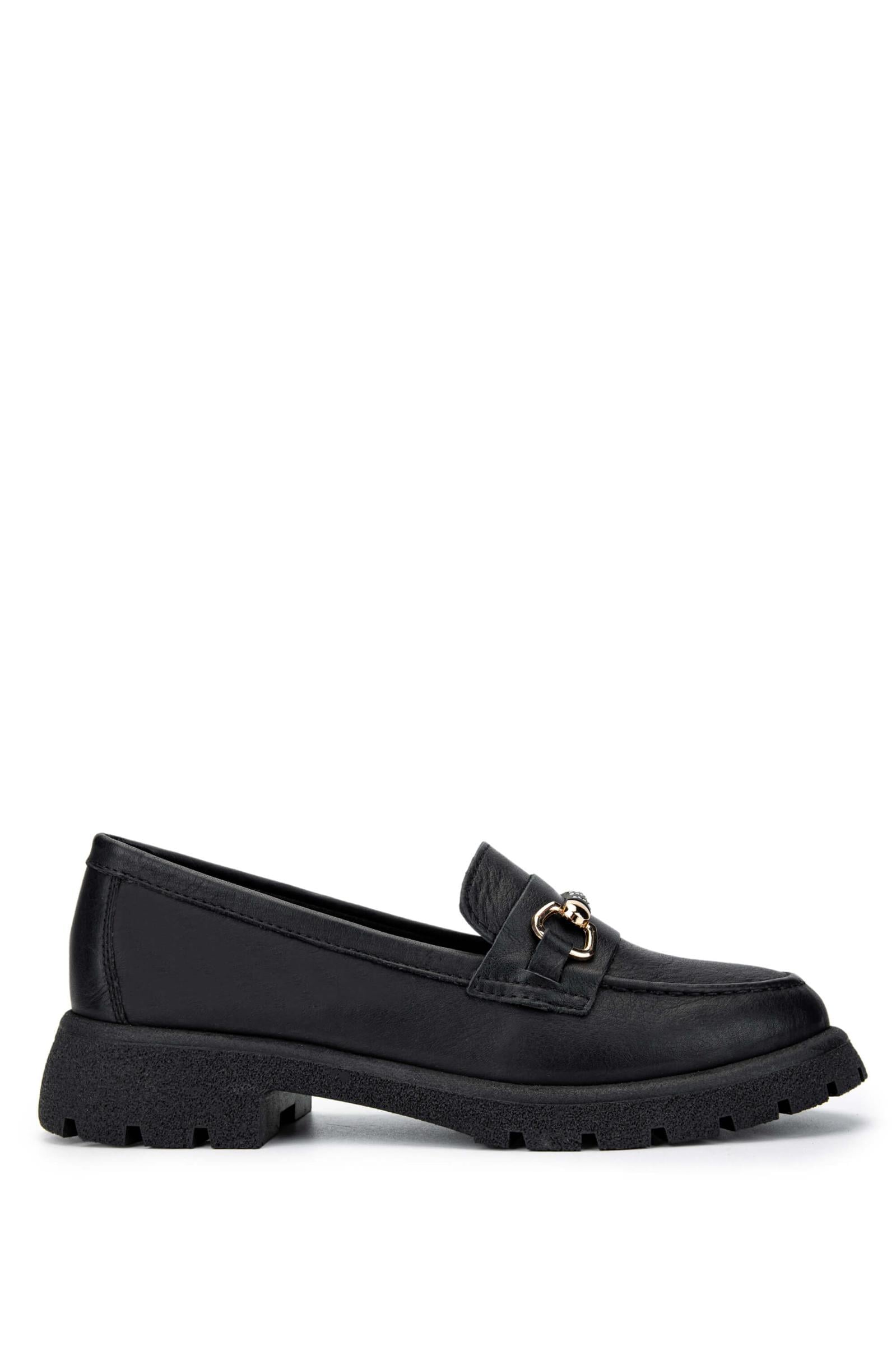 Tamer Tanca Kadın Hakiki Deri Siyah Deri Loafer Ayakkabı
