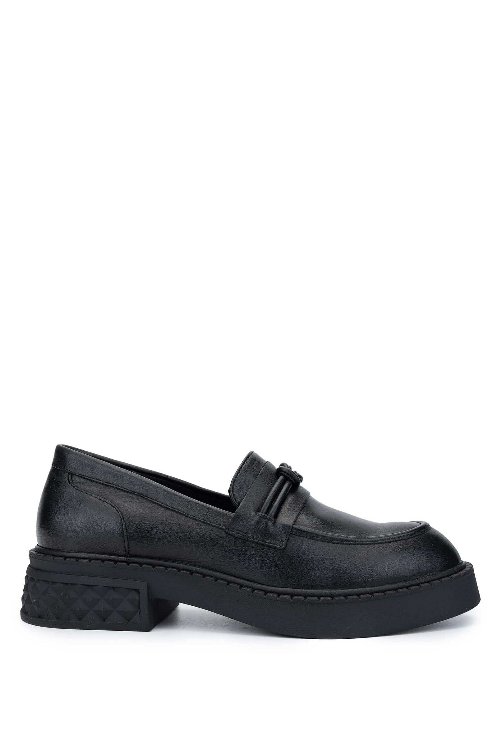 Tamer Tanca Kadın Hakiki Deri Siyah Deri Loafer Ayakkabı