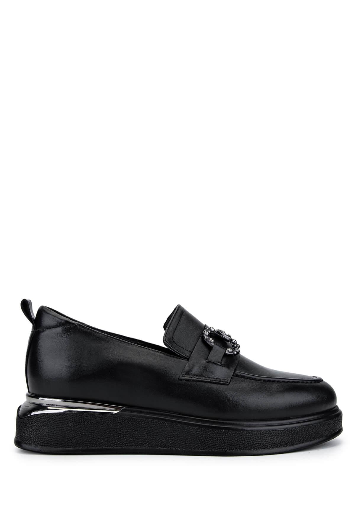 Tamer Tanca Kadın Hakiki Deri Siyah Deri Loafer Ayakkabı