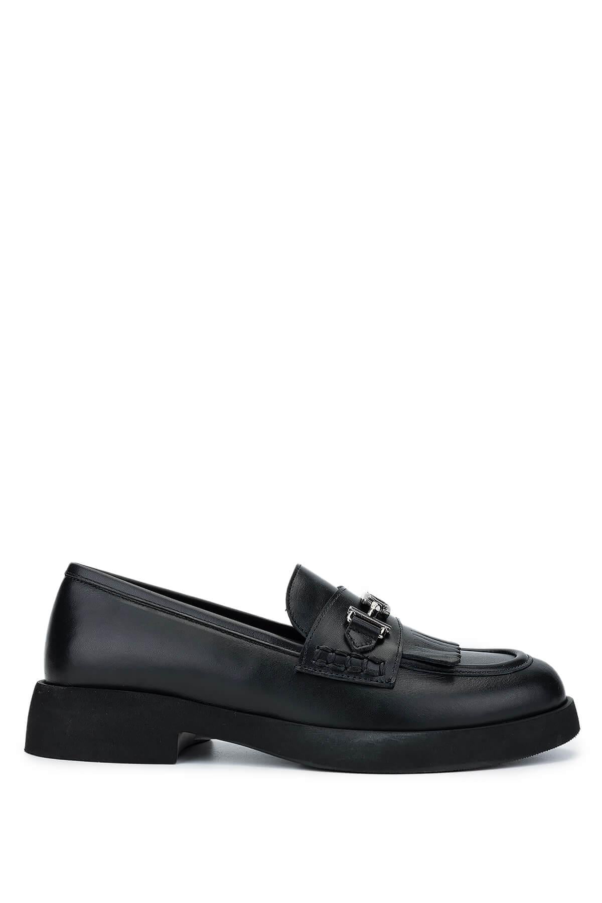 Tamer Tanca Kadın Hakiki Deri Siyah Deri Loafer Ayakkabı