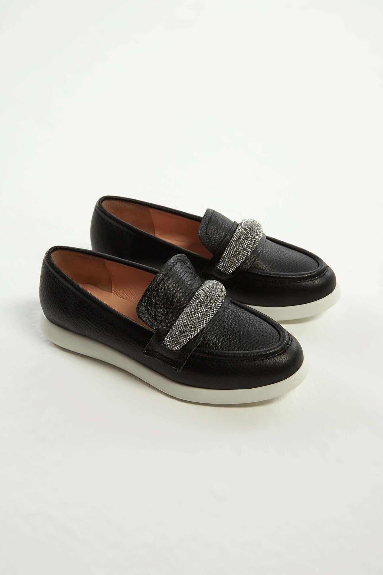 Tamer Tanca Kadın Hakiki Deri Siyah Deri Loafer Ayakkabı