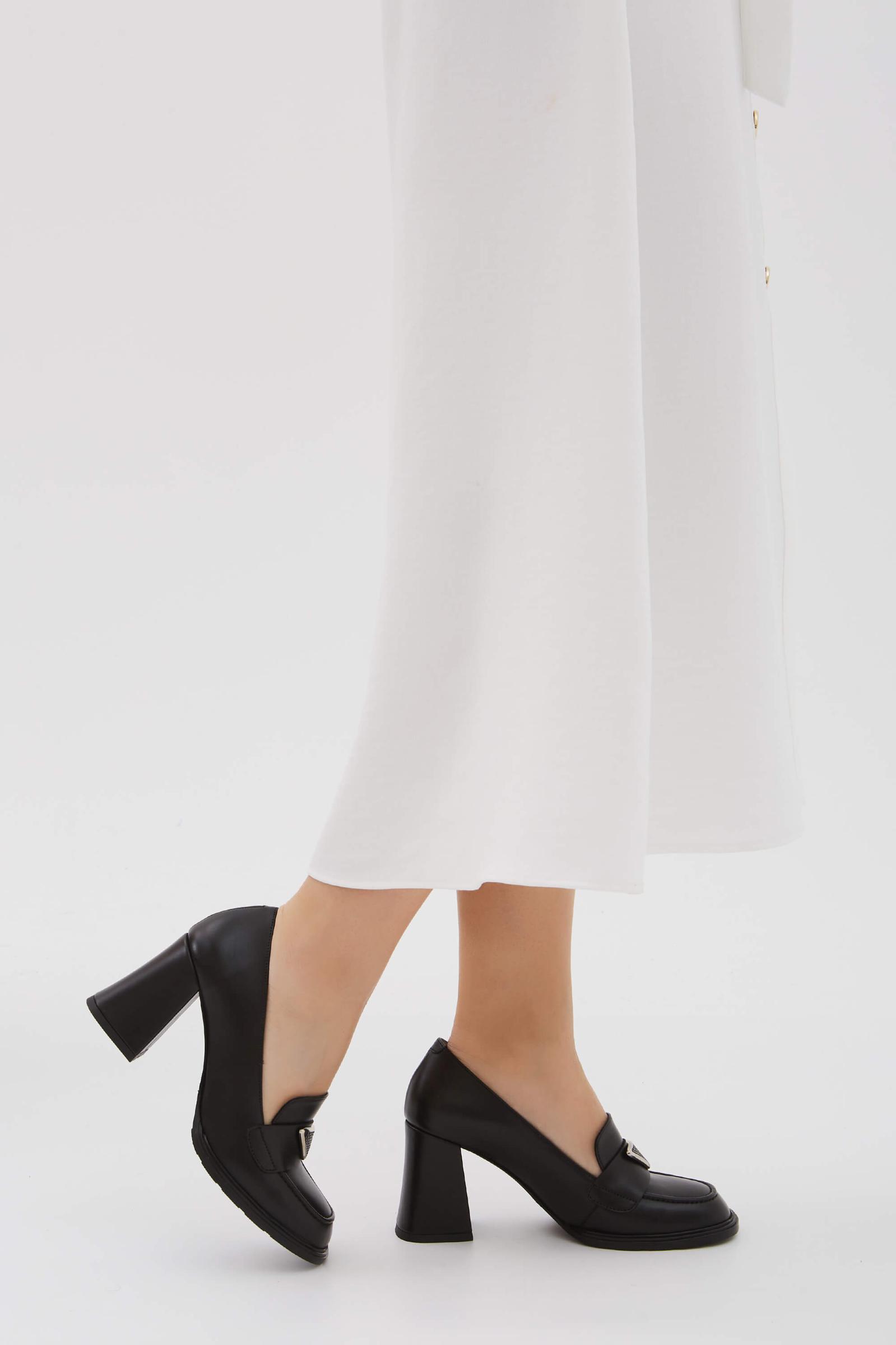 Tamer Tanca Kadın Hakiki Deri Siyah Deri Topuklu Ayakkabı