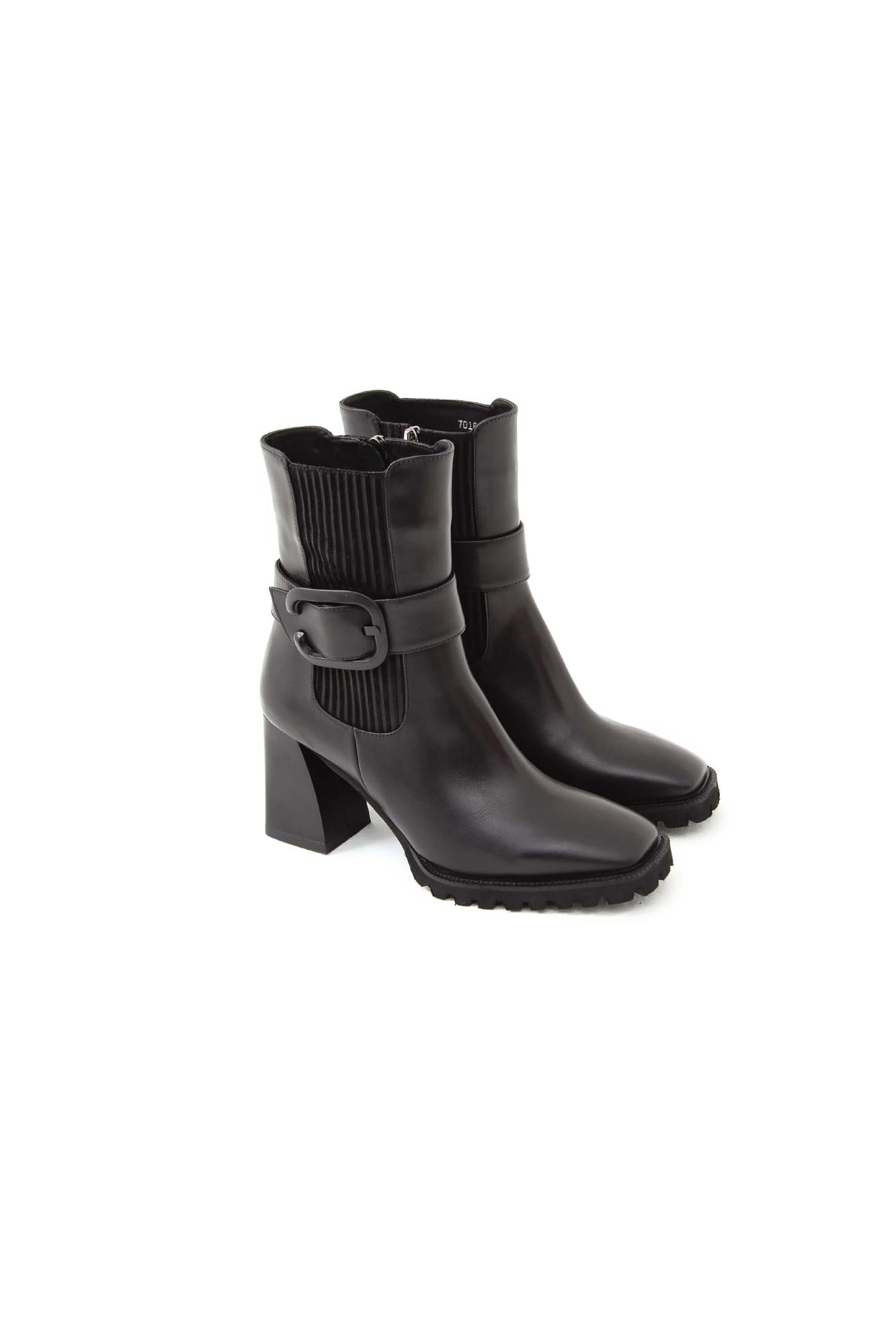 Tamer Tanca Kadın Hakiki Deri Siyah Deri Topuklu Bot