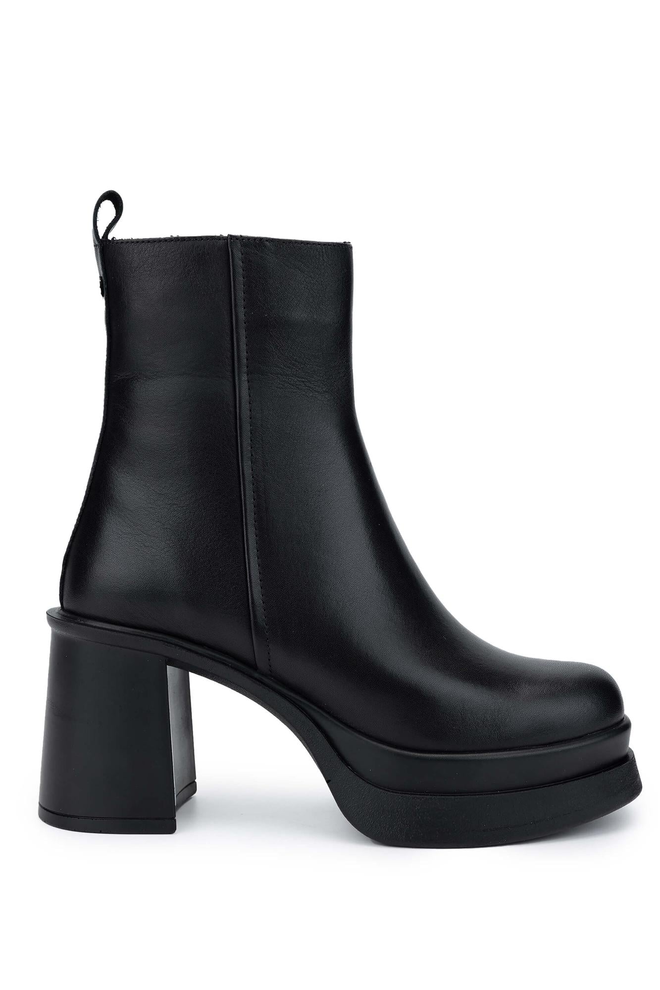 Tamer Tanca Kadın Hakiki Deri Siyah Deri Topuklu Bot