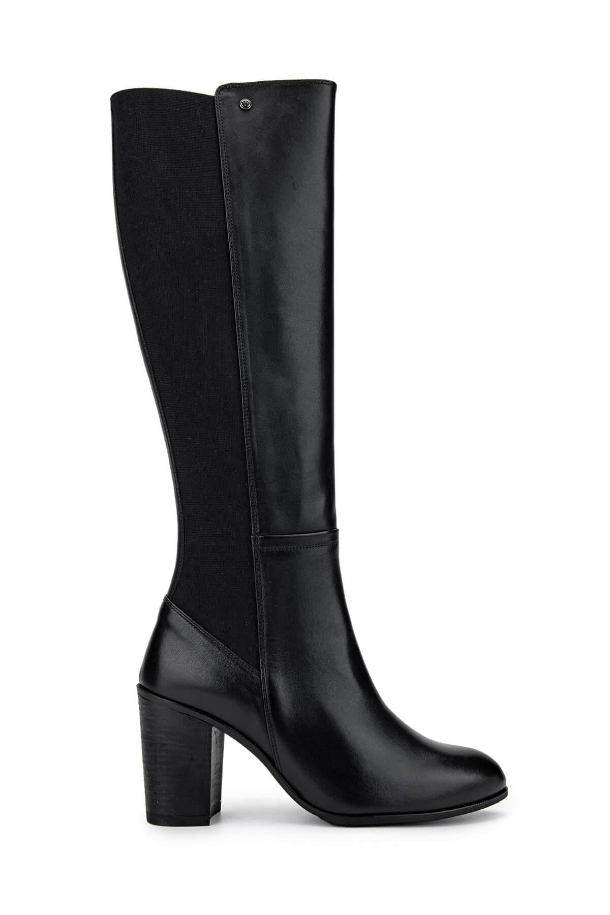 Tamer Tanca Kadın Hakiki Deri Siyah Deri Topuklu Çizme