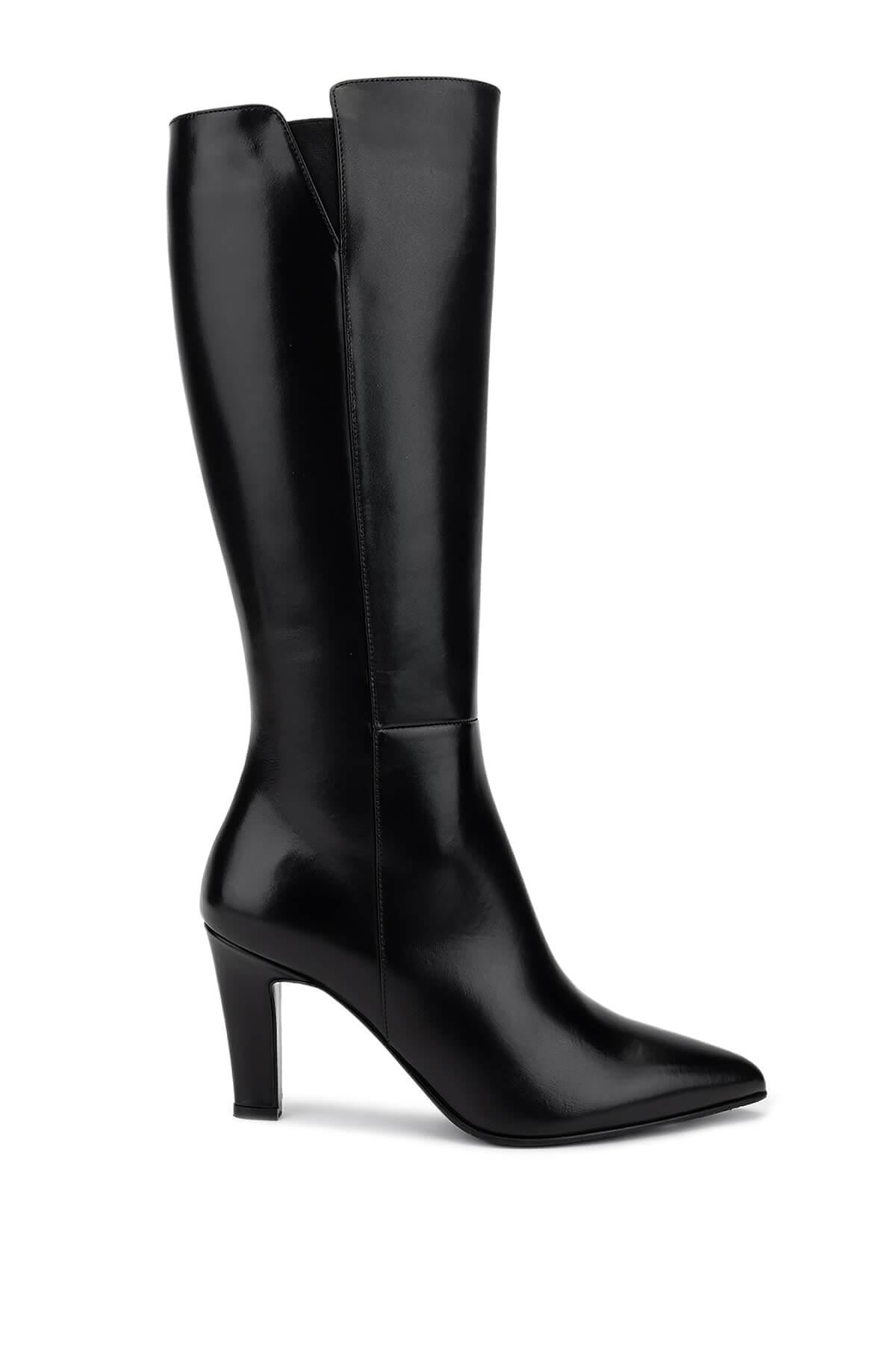 Tamer Tanca Kadın Hakiki Deri Siyah Deri Topuklu Çizme
