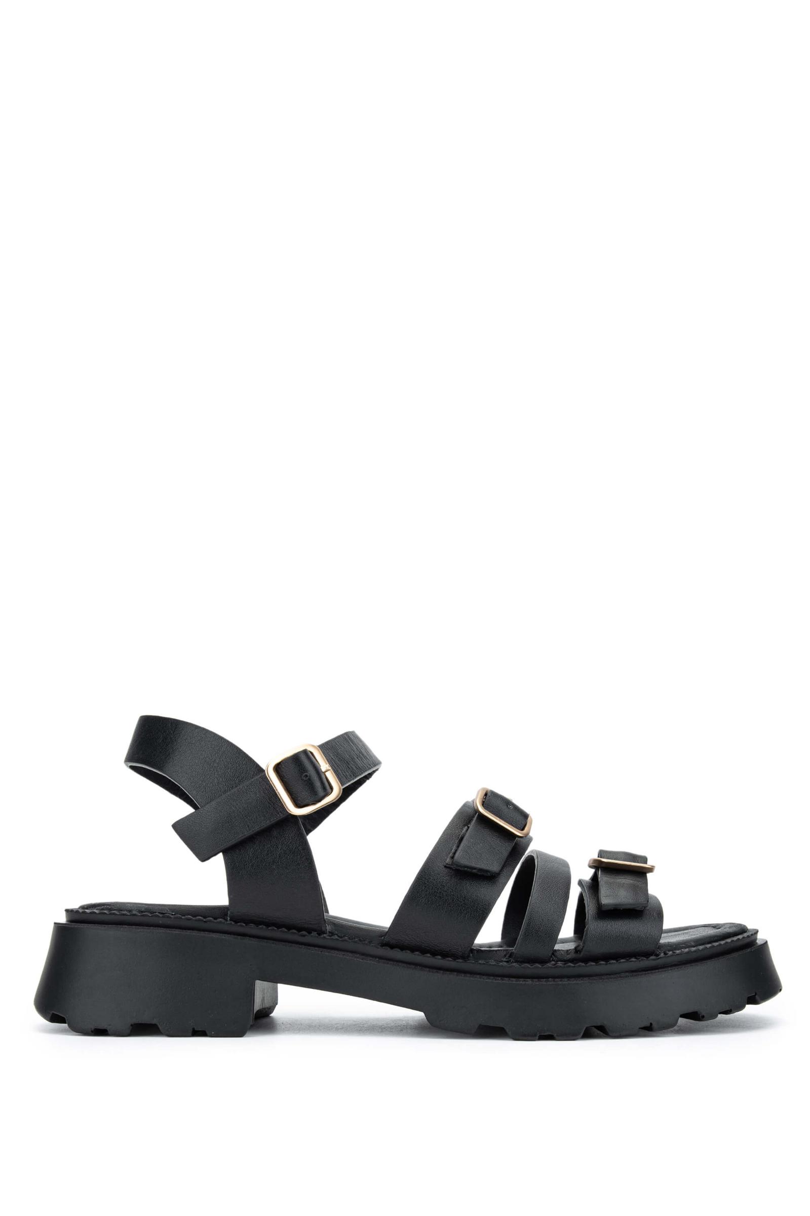 Tamer Tanca Kadın Hakiki Deri Siyah Deri Topuklu Sandalet