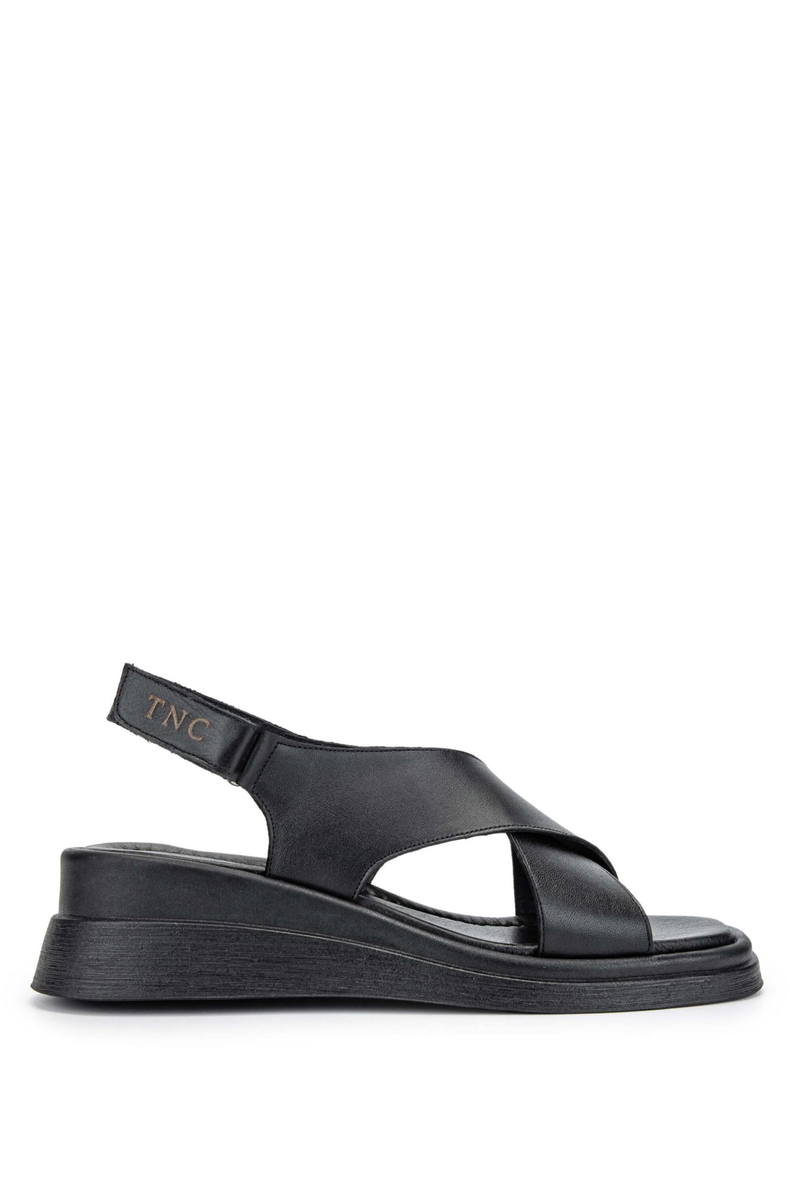 Tamer Tanca Kadın Hakiki Deri Siyah Deri Topuklu Sandalet