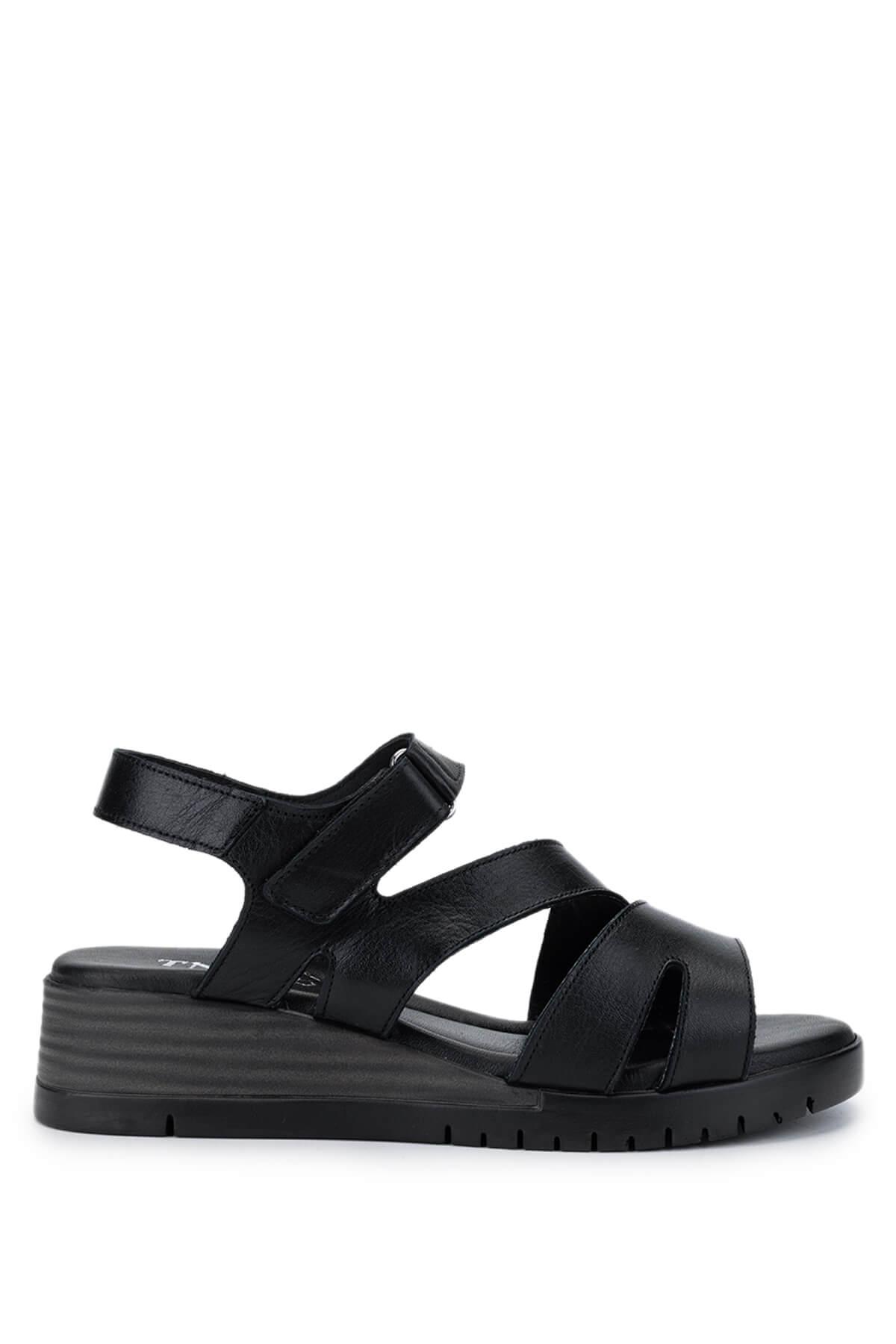 Tamer Tanca Kadın Hakiki Deri Siyah Deri Topuklu Sandalet