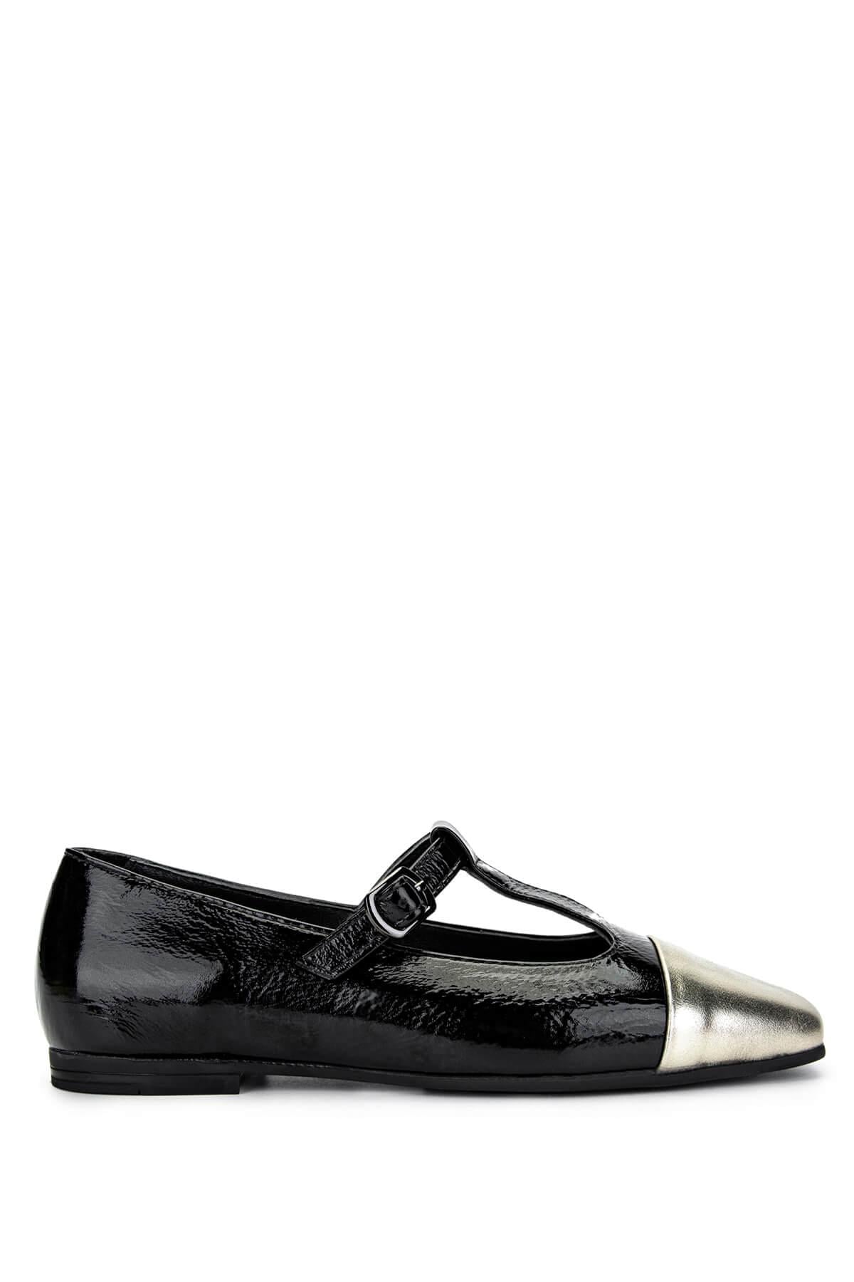 Tamer Tanca Kadın Hakiki Deri Siyah/Dore Babet Ayakkabı