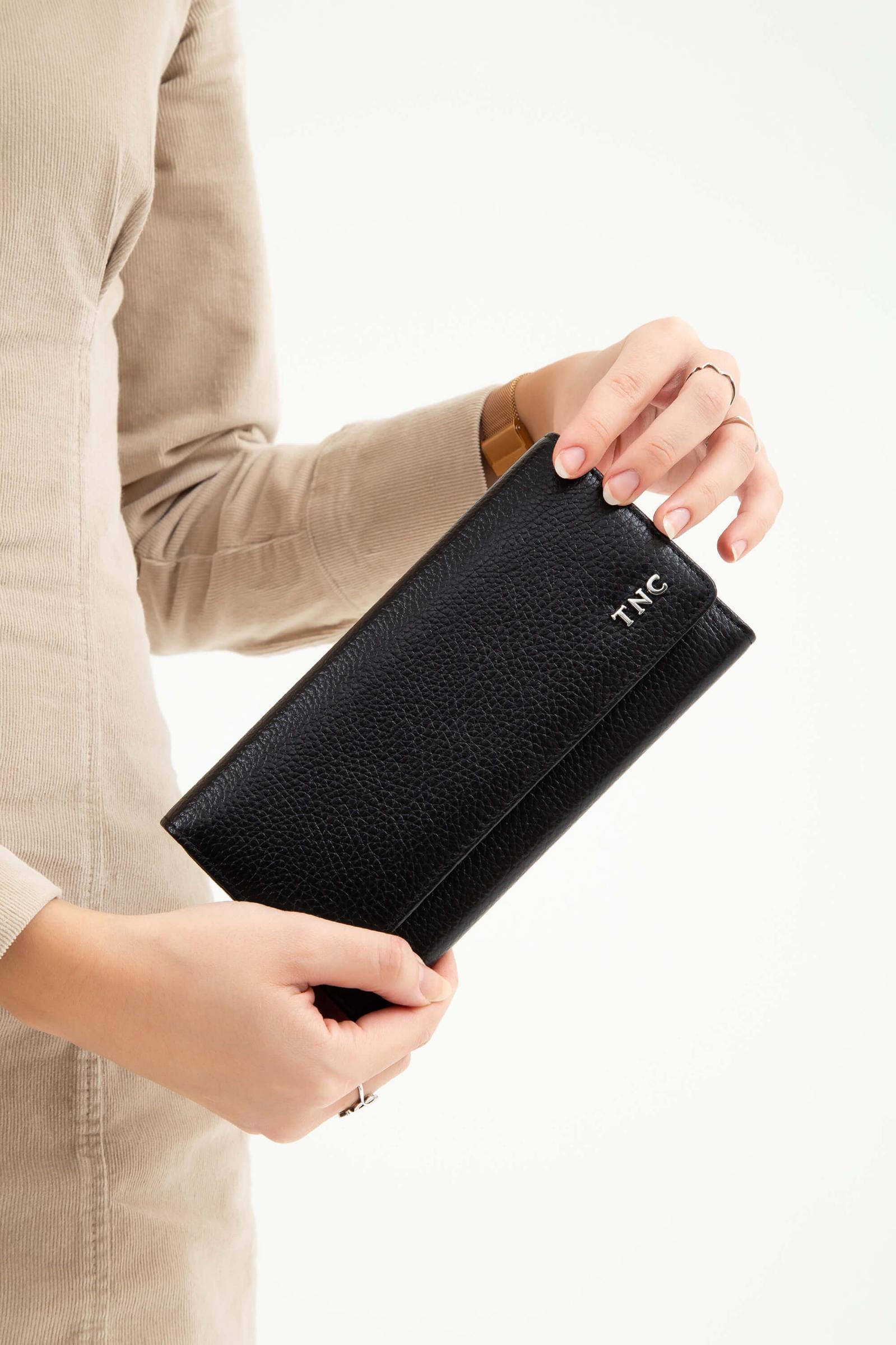 Tamer Tanca Kadın Hakiki Deri Siyah Floter Günlük Cuzdan