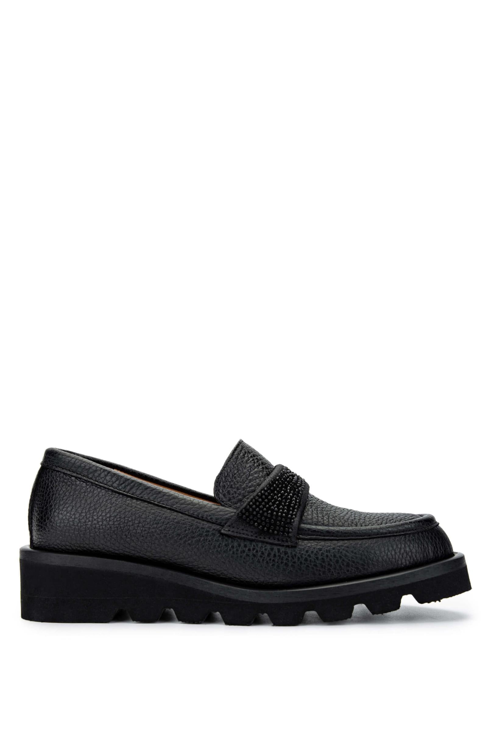 Tamer Tanca Kadın Hakiki Deri Siyah Floter Loafer Ayakkabı