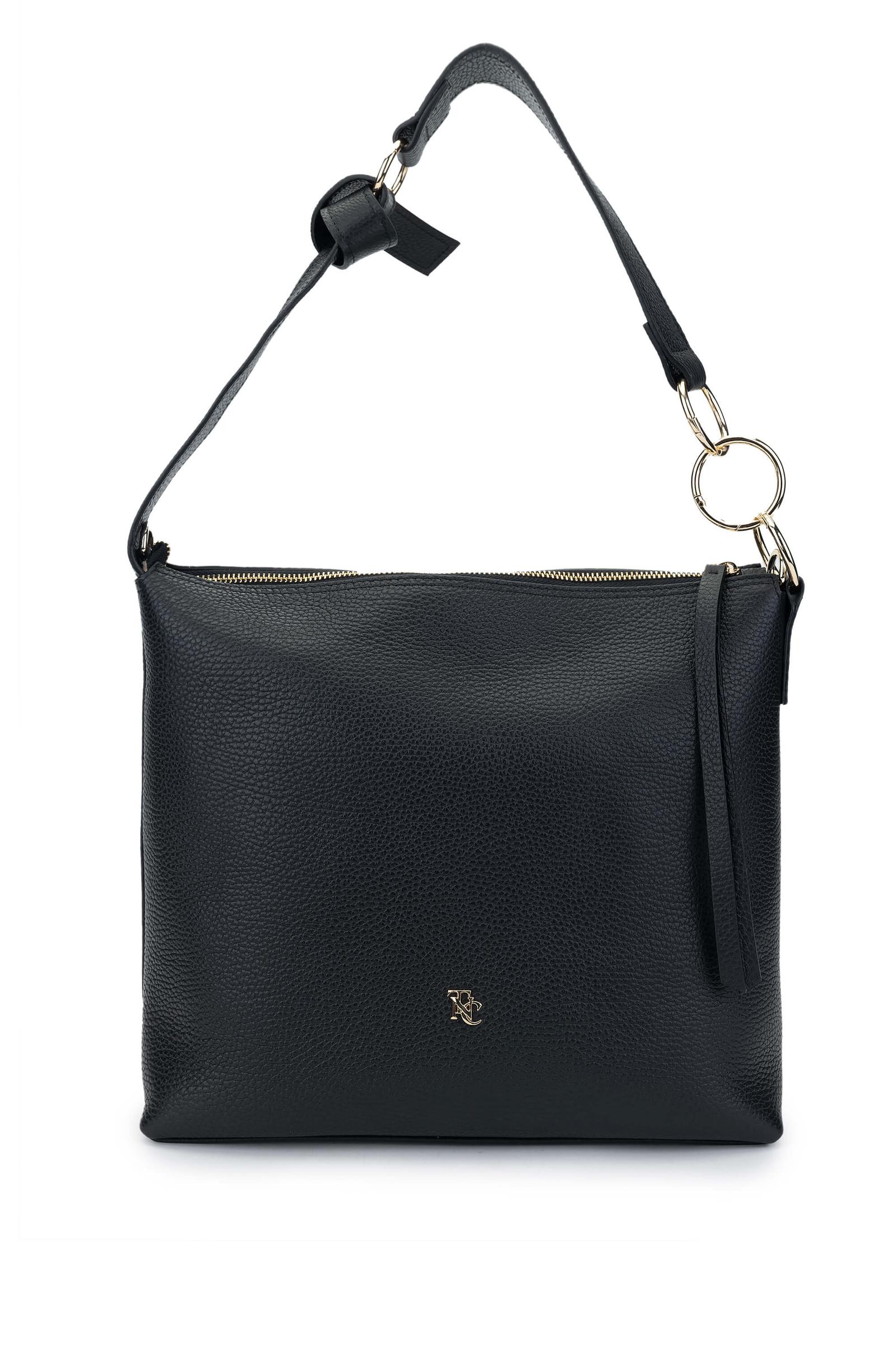 Tamer Tanca Kadın Hakiki Deri Siyah Floter Omuz Çanta