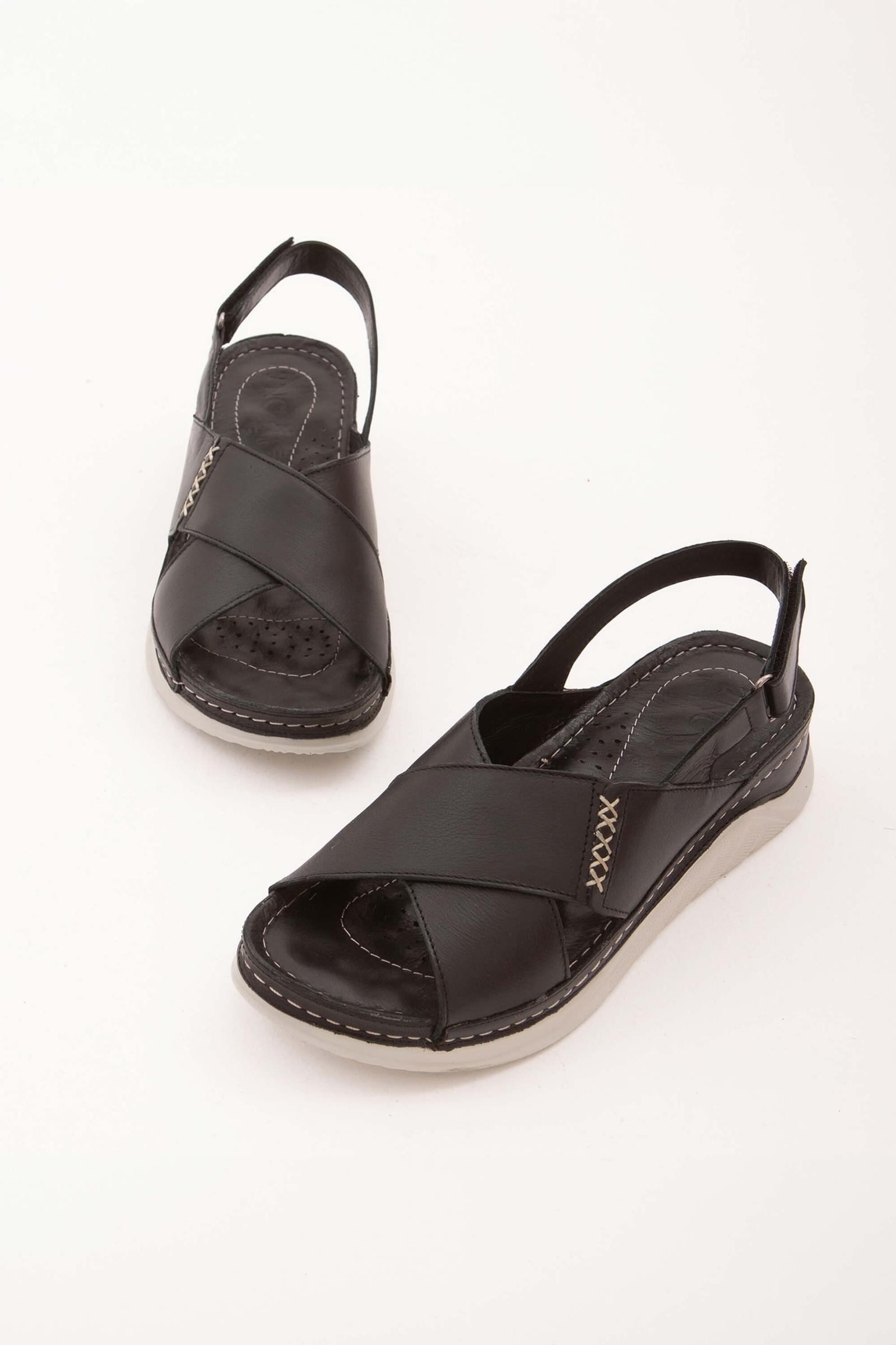 Tamer Tanca Kadın Hakiki Deri Siyah Günlük Sandalet