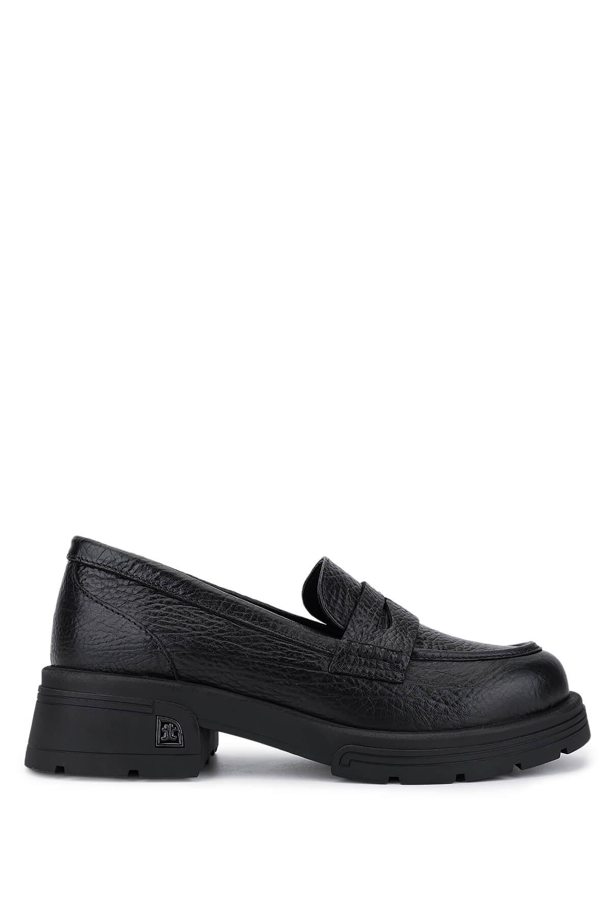 Tamer Tanca Kadın Hakiki Deri Siyah Jumbo Loafer Ayakkabı