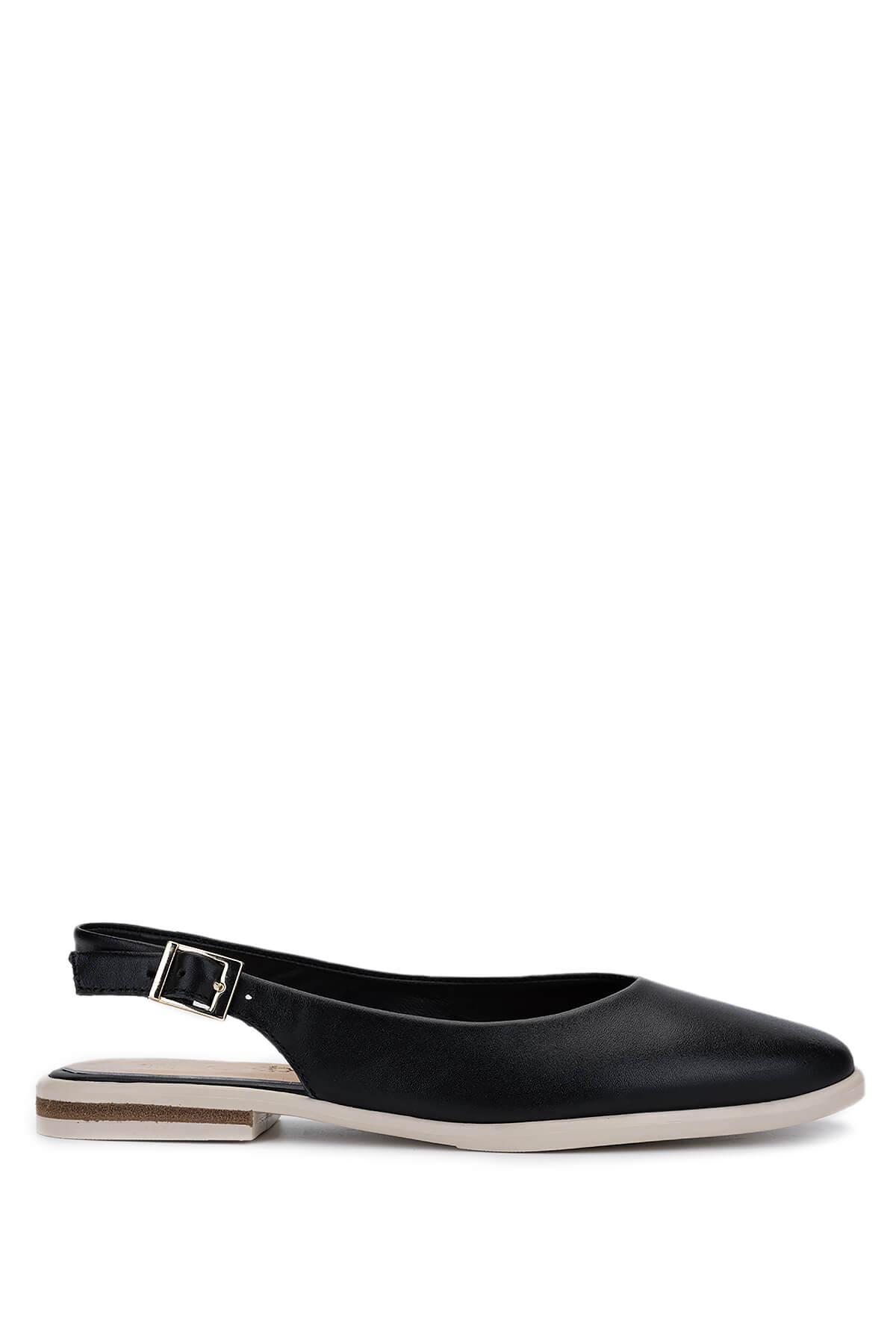 Tamer Tanca Kadın Hakiki Deri Siyah/Krem Babet Ayakkabı