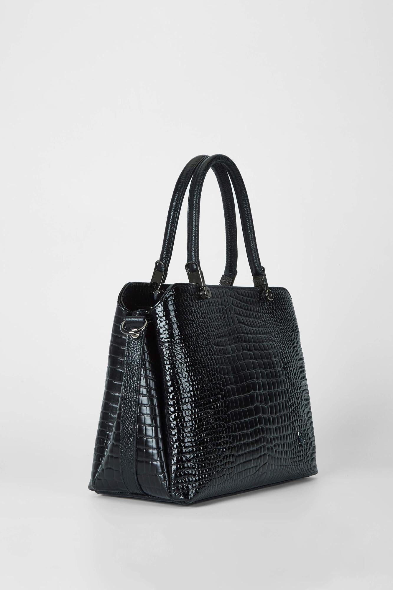 Tamer Tanca Kadın Hakiki Deri Siyah Kroko Kol Çantası