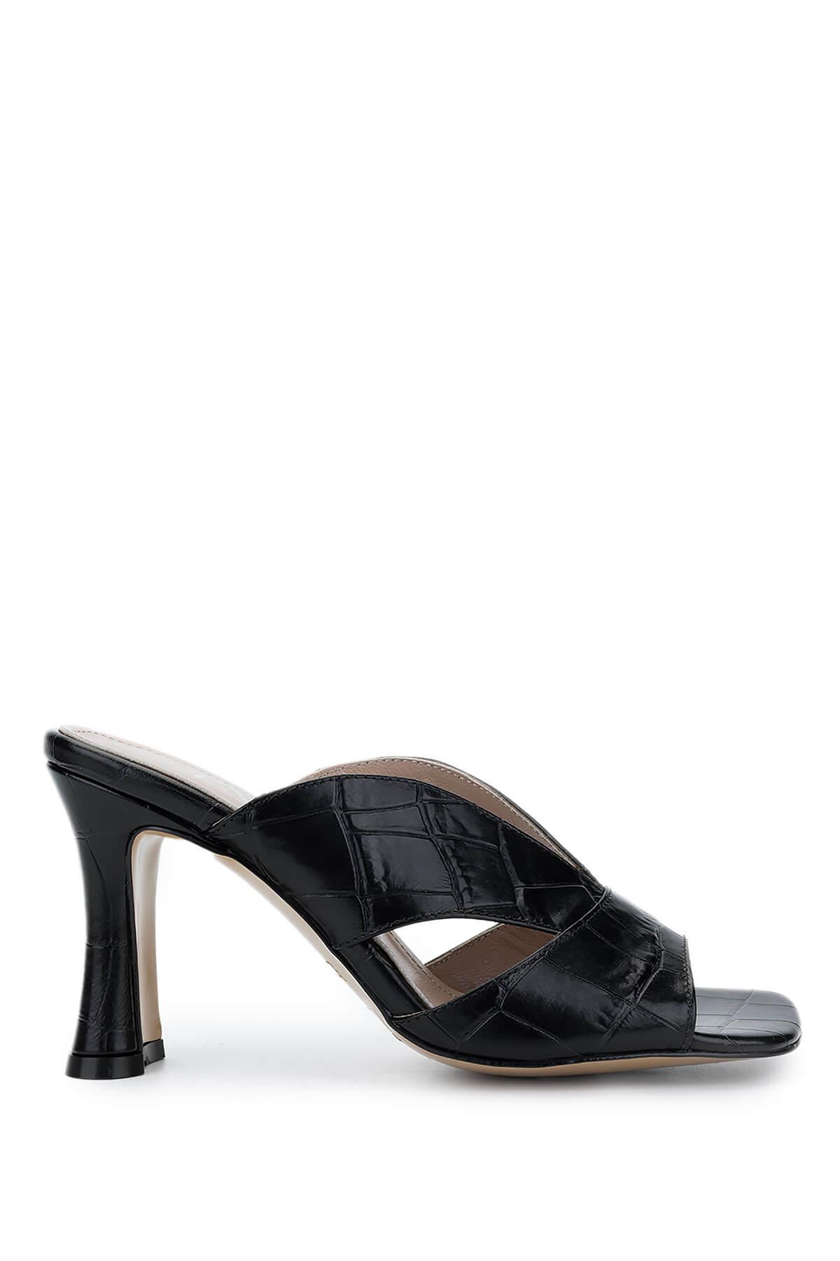 Tamer Tanca Kadın Hakiki Deri Siyah Kroko Topuklu Terlik