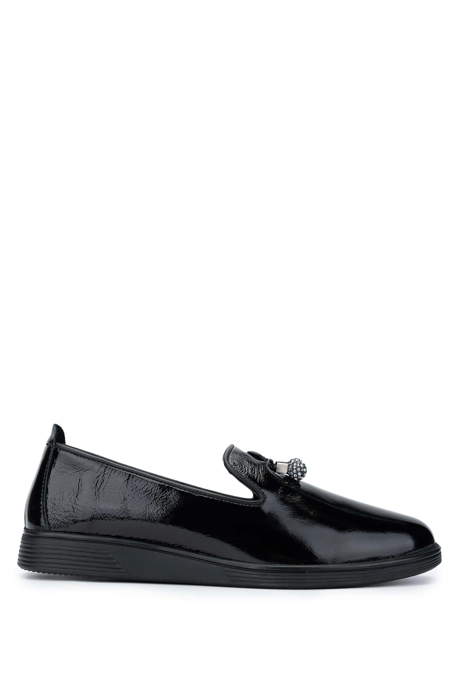 Tamer Tanca Kadın Hakiki Deri Siyah Rugan Casual Ayakkabı